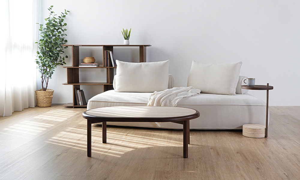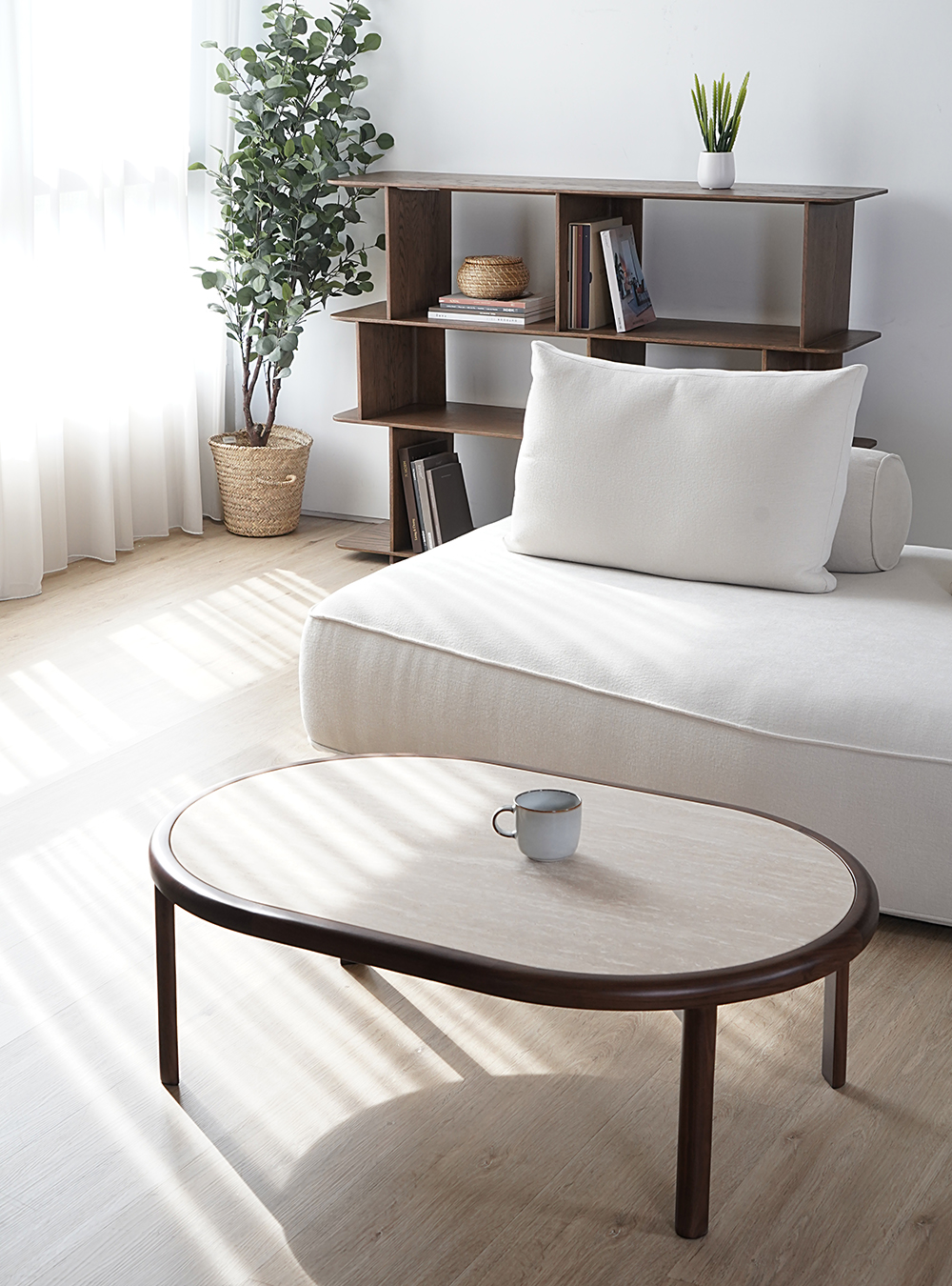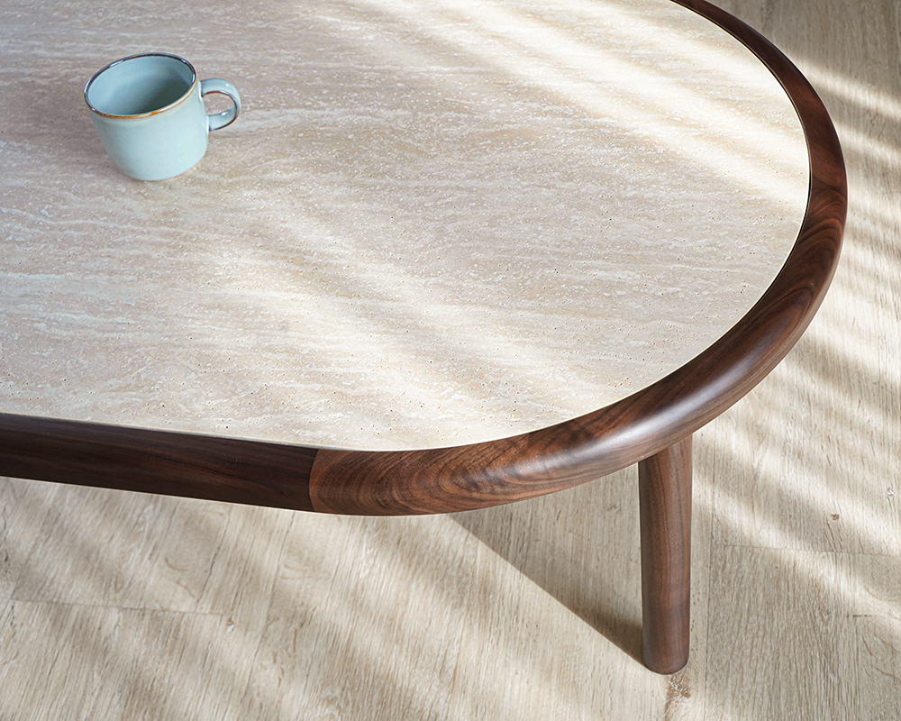 Meld洞石橢圓茶几,這張茶几把兩種很不一樣的材質放在一起,卻一點也不衝突。桌面選用天然洞石,質感自然、沉穩,木質結構則溫潤柔和,讓空間多了一份溫度。特別的是,天然洞石桌面被圓弧流線的木質邊緣包覆,線條一路延伸,讓石材看起來不再冰冷,而是多了柔和、順眼的感覺,摸起來也更加安心舒適。整體造型簡單卻很耐看,不管從哪個角度,都能感受到材質之間的平衡與細節。透過暖色系洞石與木頭的搭配,這張茶几可以輕鬆融入各種居家風格,是一張耐用、耐看,也能長久陪伴生活的家具。