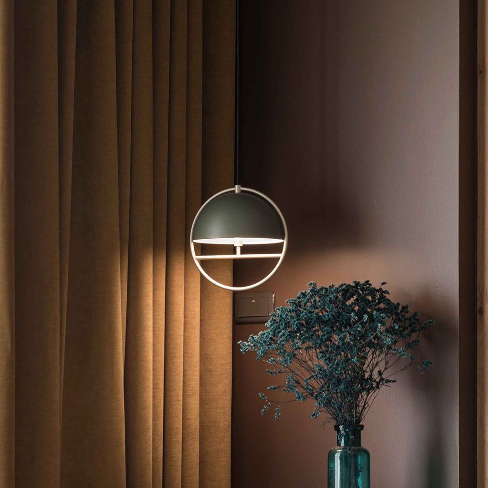 靈感取自東方庭園建築 – 月門(Moon Gate)。新生代設計師Rou為宮廷古劇中的造景吸引,萌生以圓環框景留住美色的想法,也許是屋外英姿颯颯的百年梧桐,或是變化萬千的天外物色。HUAN悄悄引光入室,與金屬框桿折射的光影相呼應,於屋中形成獨特的框景美學。