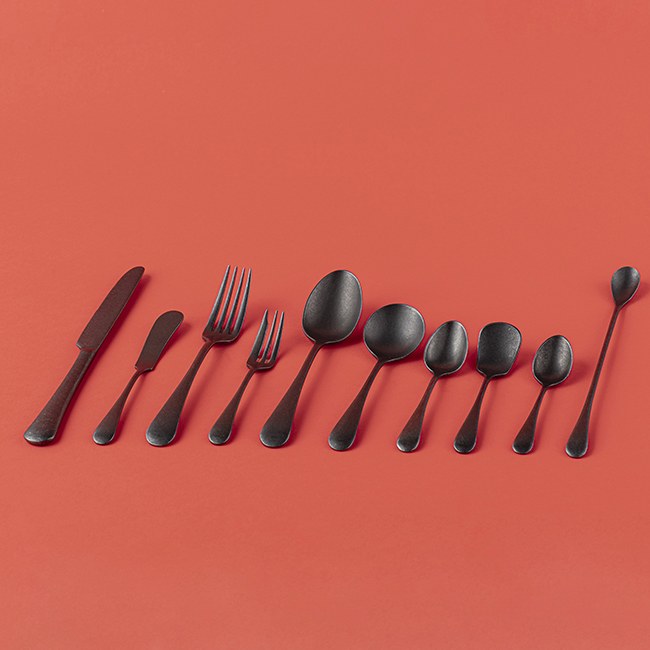 復古英倫餐具系列,以黑色調為基礎,無論室內或戶外使用都別具風格,帶著粗曠的成熟韻味。簡歛的風格中帶著工匠的技藝精神,以純熟技術創造出一系列金屬餐器,無論是喜歡戶外露營、軍用風格、工業風、復古質樸風,都很適合搭配使用。