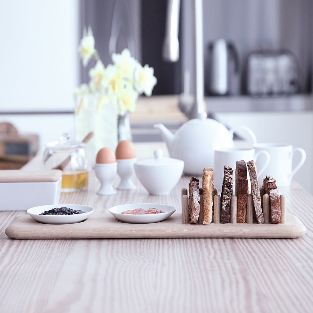 日常生活裡,只要在細節上稍稍講究,就可以體會美好的滋味無限,小巧的缽碗坐在帶著把手的木頭托盤,有種閒適的細緻,在早餐時可以裝入喜歡的奶油或橄欖油,旁邊木頭托盤則可以擺放切好的土司或是整條法國麵包,方便用餐時拿取,像這種在生活用品上細膩的設計,都可以提升整個生活品質與居家氣氛。