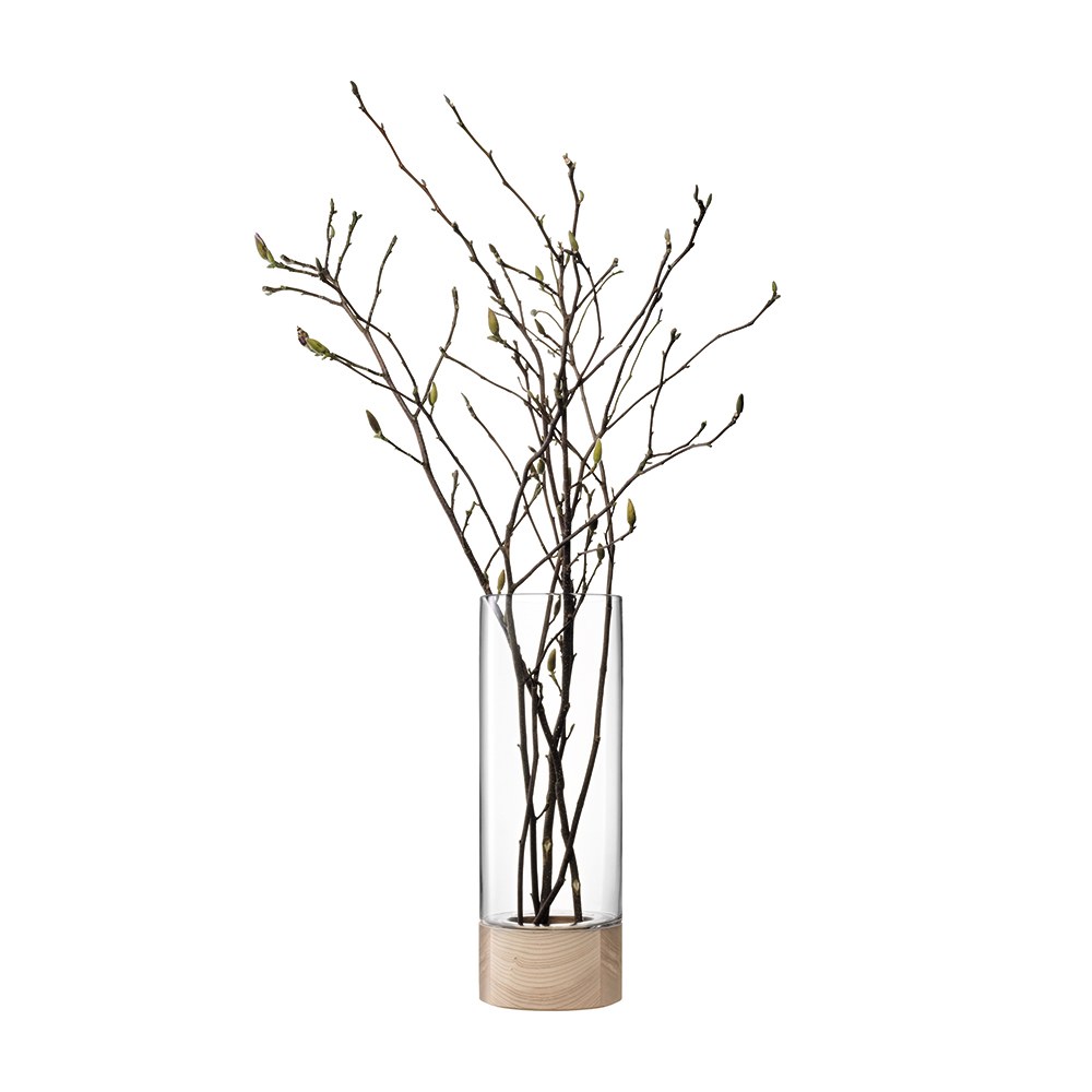 木底圓玻璃花器,花瓶底座使用FSC 認證的梣木,也可當作燭台使用。簡單的插上花卉或觀葉,都能成為家中增添自然氣息的氛圍。