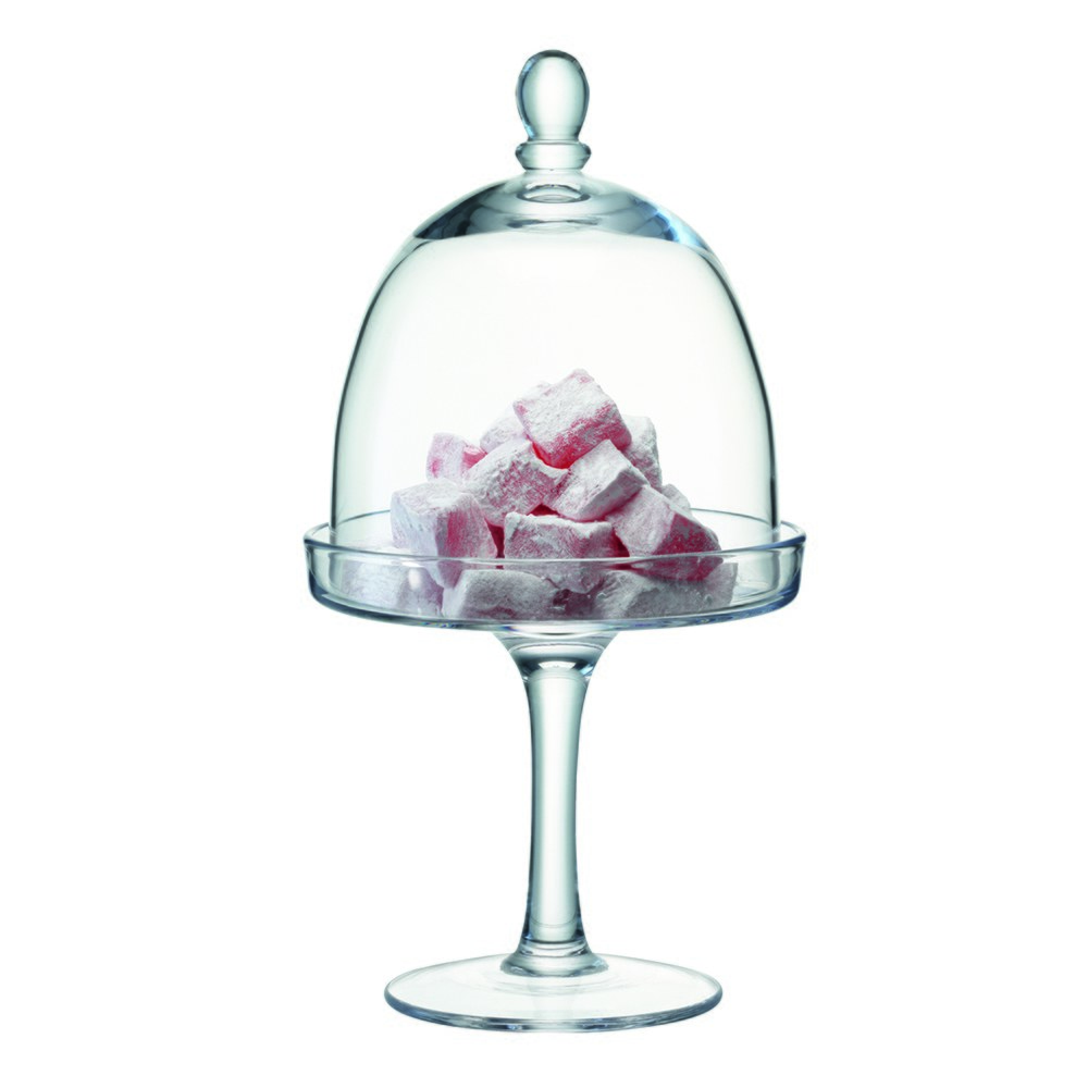 全玻形輪廓點心盅有著透明而優雅的玻璃鐘罩,微微高度稱起食材,讓擺放點心或任何食品都更顯得高雅有品味。