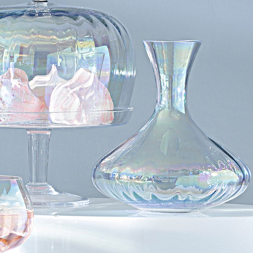 展現深洋裡最神秘也最吸引人的光彩,以獨特的技術調配玻璃的色彩,讓玻璃器皿又為人們創造了全然不同的感官體驗。此款玻璃酒瓶,也可以當醒酒器使用,流暢而經典的造型,無論放在各種場合都令人驚艷。