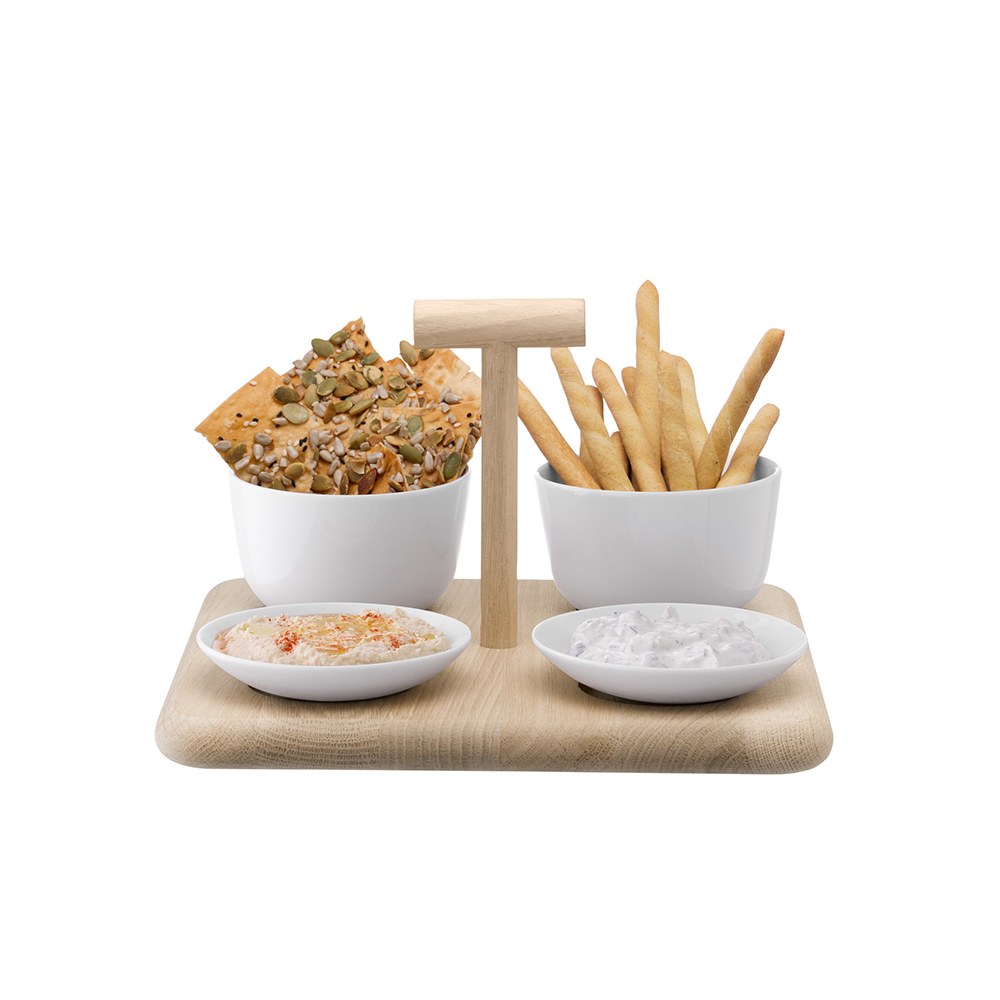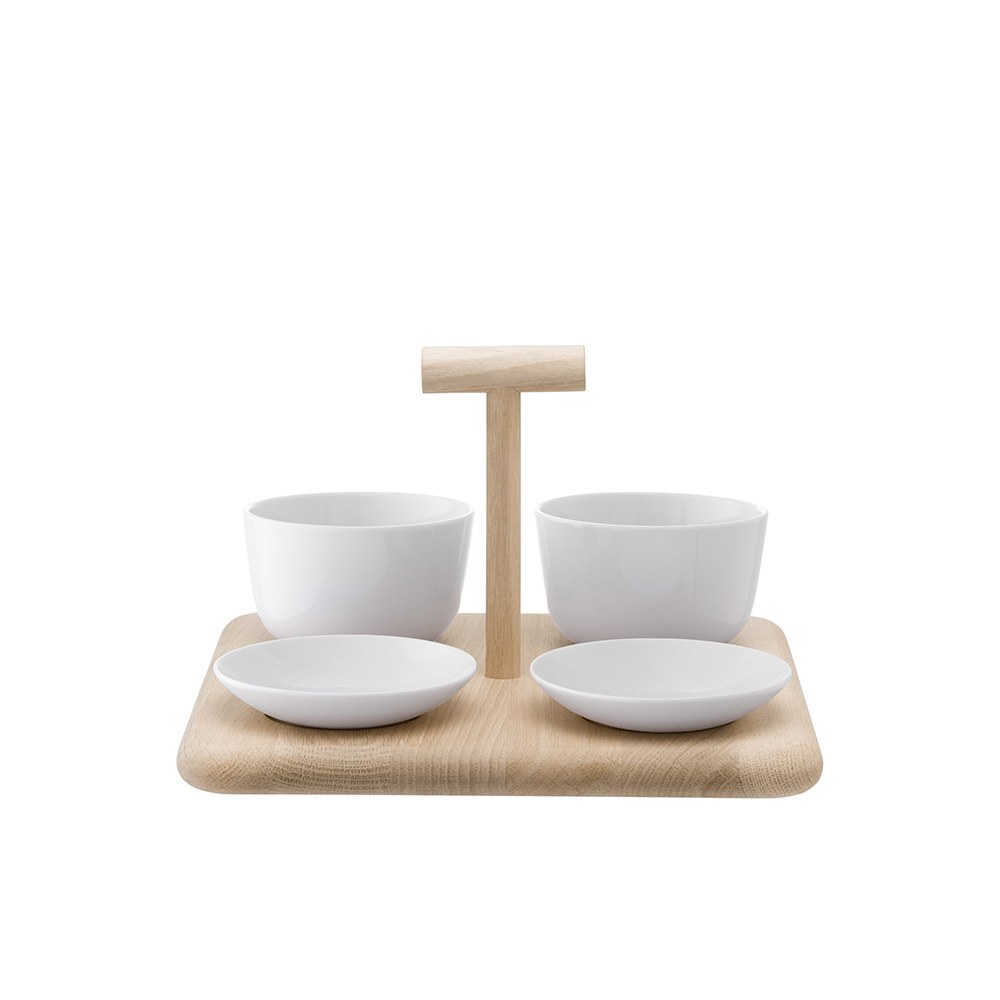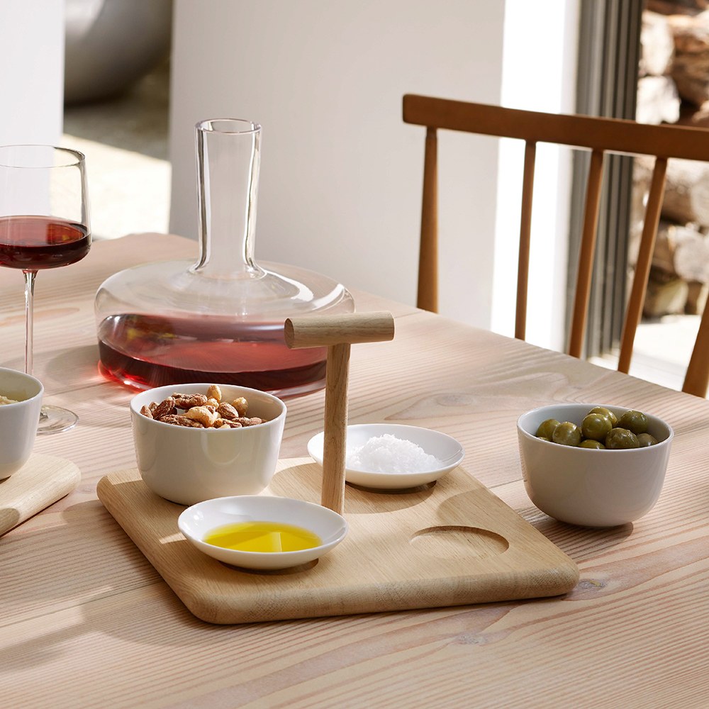 小巧的缽碗坐在帶著把手的木頭托盤,有種閒適的細緻,在早餐時可以裝入喜歡的奶油或橄欖油,方便用餐時拿取,像這種在生活用品上細膩的設計,都可以提升整個生活品質與居家氣氛。