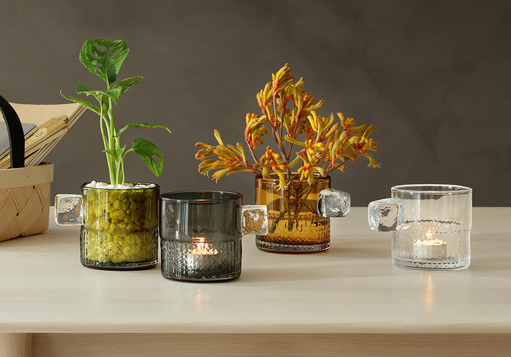 LSA 把手系列玻璧燭台,將藝術與功能完美結合,為您的家居增添一絲優雅。當燭台時,它營造出一片柔和的燭光,照射在玻璧色彩上,宛如晨曦映照在大地上,散發出迷人的氛圍。精巧的編織紋理將光線科學地折射到不同角度,呈現出多樣的美感,每一次照明都如詩如畫。當水杯時,LSA 把手系列提供五種獨特的顏色選擇,讓每個人都能擁有一款獨特的水杯,為聚會增添樂趣。這些水杯同樣可用作小點心容器,質感出眾,為您的日常生活帶來一絲奢華。當花器時,這些燭台可以容納小型植物,單獨使用或與白色石子搭配,為您的空間注入一抹生氣和自然之美。