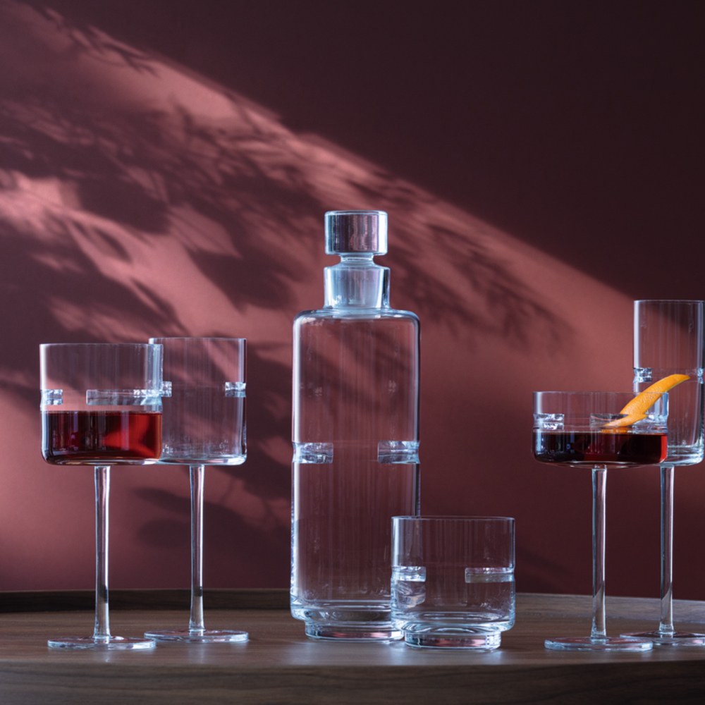 擁有超過50年玻璃製作技術的英國品牌LSA,其中一個極需專業的玻璃的裝飾技術為「篆刻 (engraving) 」。這是在玻璃冷卻後以手工或機器進行的,用手將玻璃壓在旋轉的菱形輪軸上來切割,產生各種圖案,為確保正確的壓力需要仔細判斷,尤其是在加工薄壁酒器時需格外小心,一不小心玻璃就可能碎裂,此過程也可以由機器執行。LSA腰封刻紋全系列包含酒杯、醒酒器、水杯、水瓶,在容器的中間腰部刻上一條具分量感的線條,如同腰帶一般,讓原本柔性的透明玻璃增添一股剛毅中性的氛圍,能夠展現行家的專業精緻系列,是贈禮好品味的選擇。