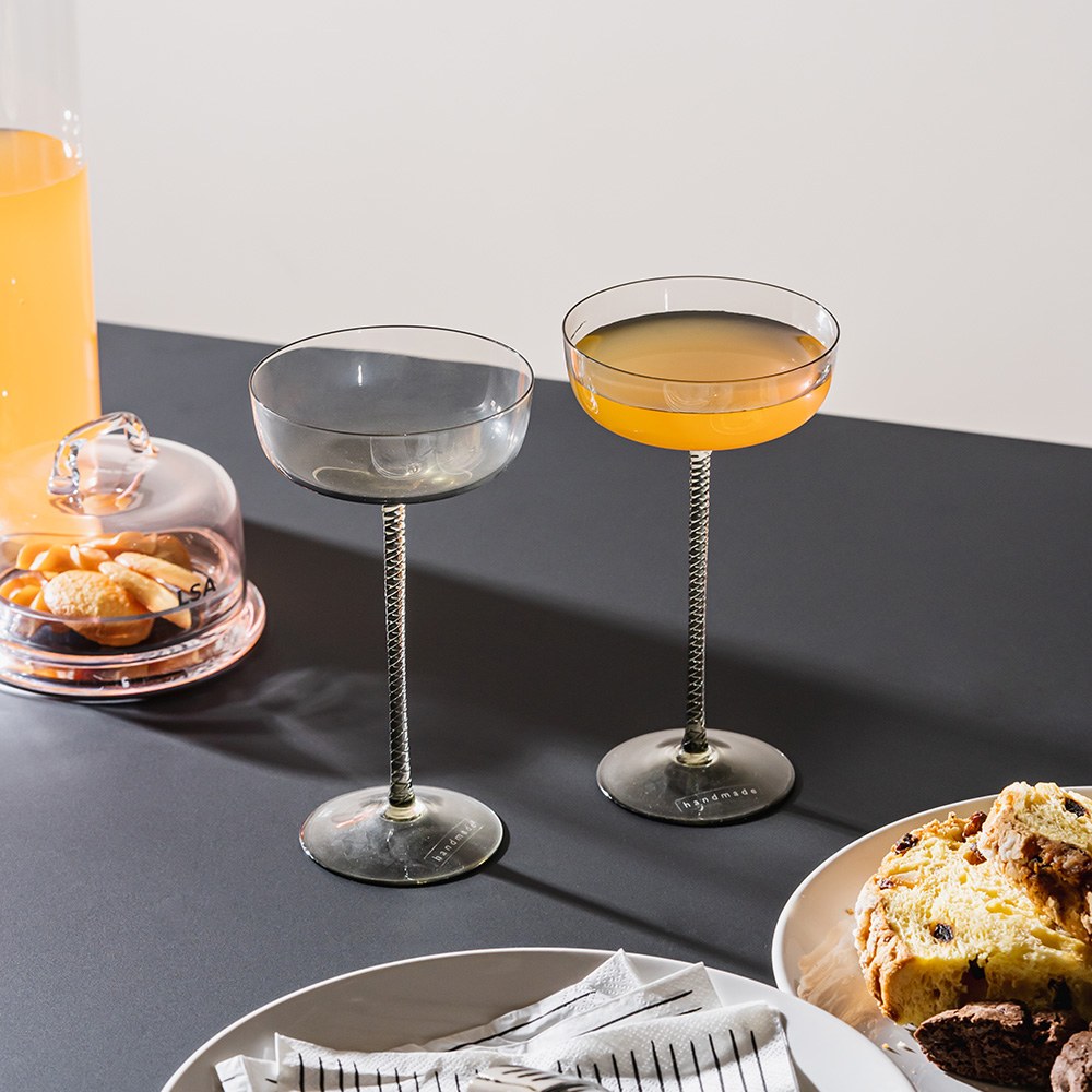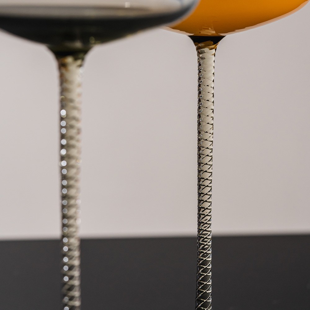 螺旋紋香檳杯3入組,杯柄上有復雜的扭曲細節,是展現玻璃頂級工藝技法,全靠老經驗玻璃師傅眼睛把關,手工繪製,需要工藝品等級的細心呵護。精工的細節讓承裝的飲品格外浪漫有情調。