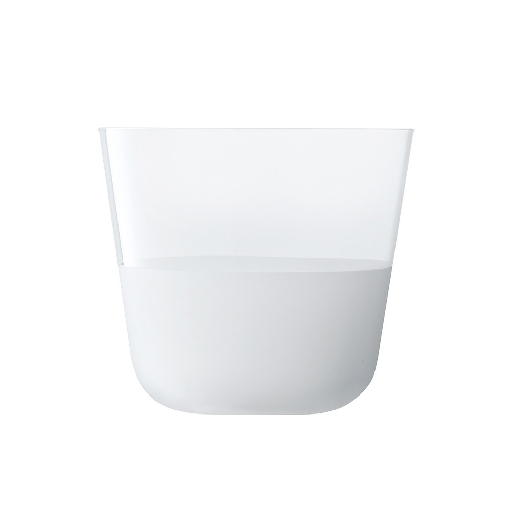 弧形對比玻璃杯圓潤的底部設計,柔和的錐形輪廓,下半部帶有磨砂質感。低飽和色調,適度地與生活融合。兼具清澈度與耐用性,適合日常使用。