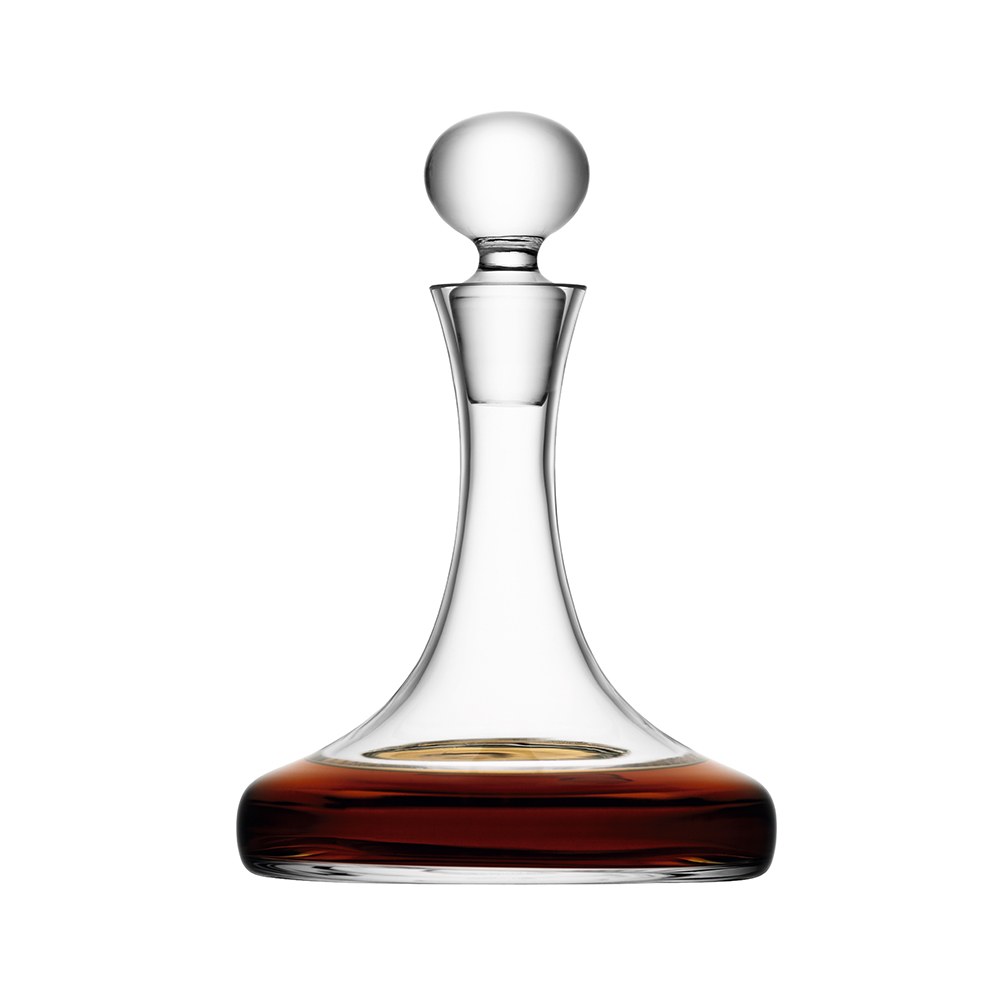 寬底沉穩醒酒器,寬闊的底座設計源自經典的船用醒酒器,確保在航行時的穩定性。球形瓶塞經工匠手工研磨,完美貼合修長的瓶頸,展現精湛工藝與優雅造型。