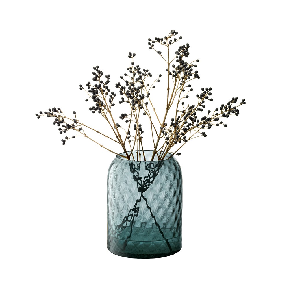 Dapple菱紋寬口花瓶,表面帶有全方位的質感。這款多功能的圓柱形設計可用於插各種鮮花和綠葉,也可作為燭台使用。當蠟燭在內燃燒時,起伏的表面能優美地折射光線,將圖案般的光暈投射到房間中。