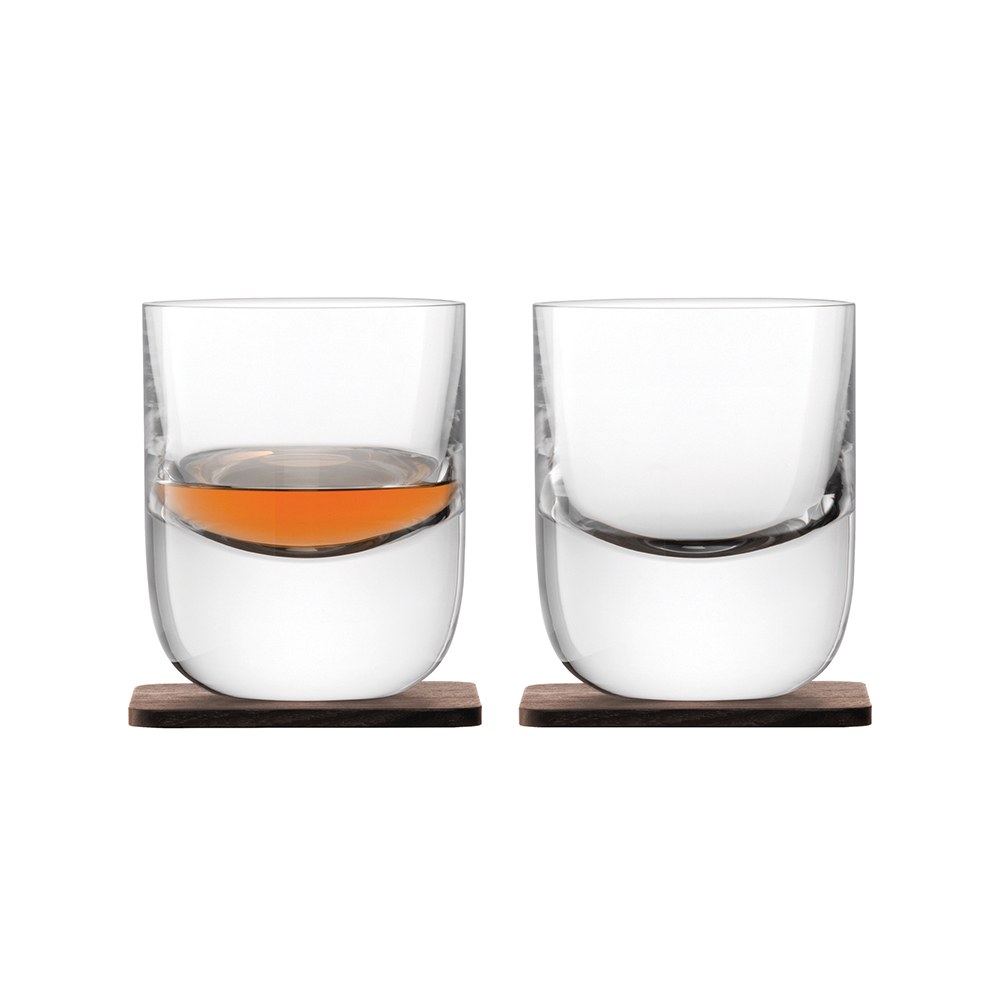 Renfrew威士忌酒杯2入組,採用圓柱形設計。每只酒杯皆經手工吹製並精細打磨,展現卓越工藝。搭配堅固的胡桃木杯墊,為傳統威士忌酒具帶來現代詮釋。