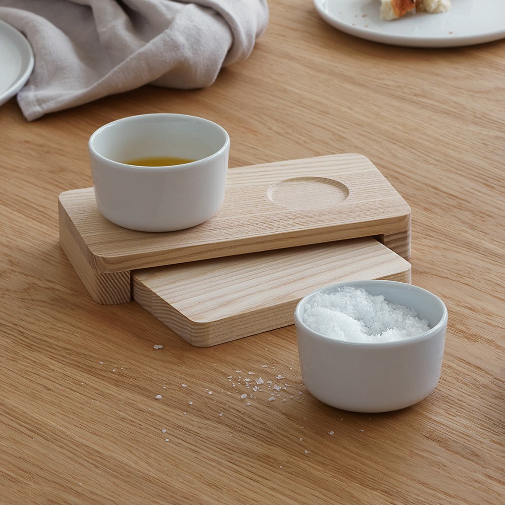 餐桌派對陶瓷點心套組包含兩個瓷碗和一個巧妙設計的雙層梣木底座,可收納於下方的平板組成。無論是分開使用還是搭配擺盤,都能靈活適應各種料理與場合,讓餐桌更具層次感。瓷碗採用高溫燒製工藝,堅固耐用,可放心放入洗碗機與微波爐,兼具美感與實用性,讓日常用餐更輕鬆自在。