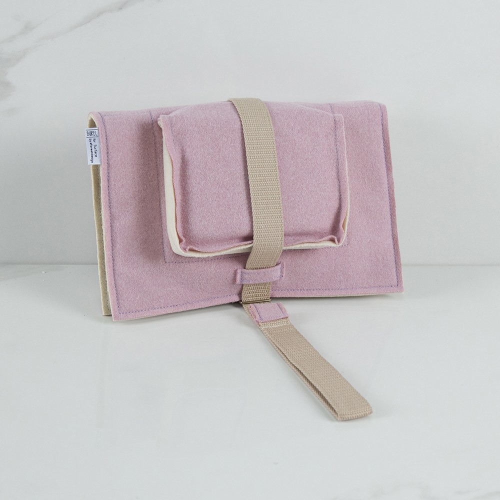 這款粉色的提袋款平板保護包外側有編織布帶可以固定,也能作為提把方便攜帶。