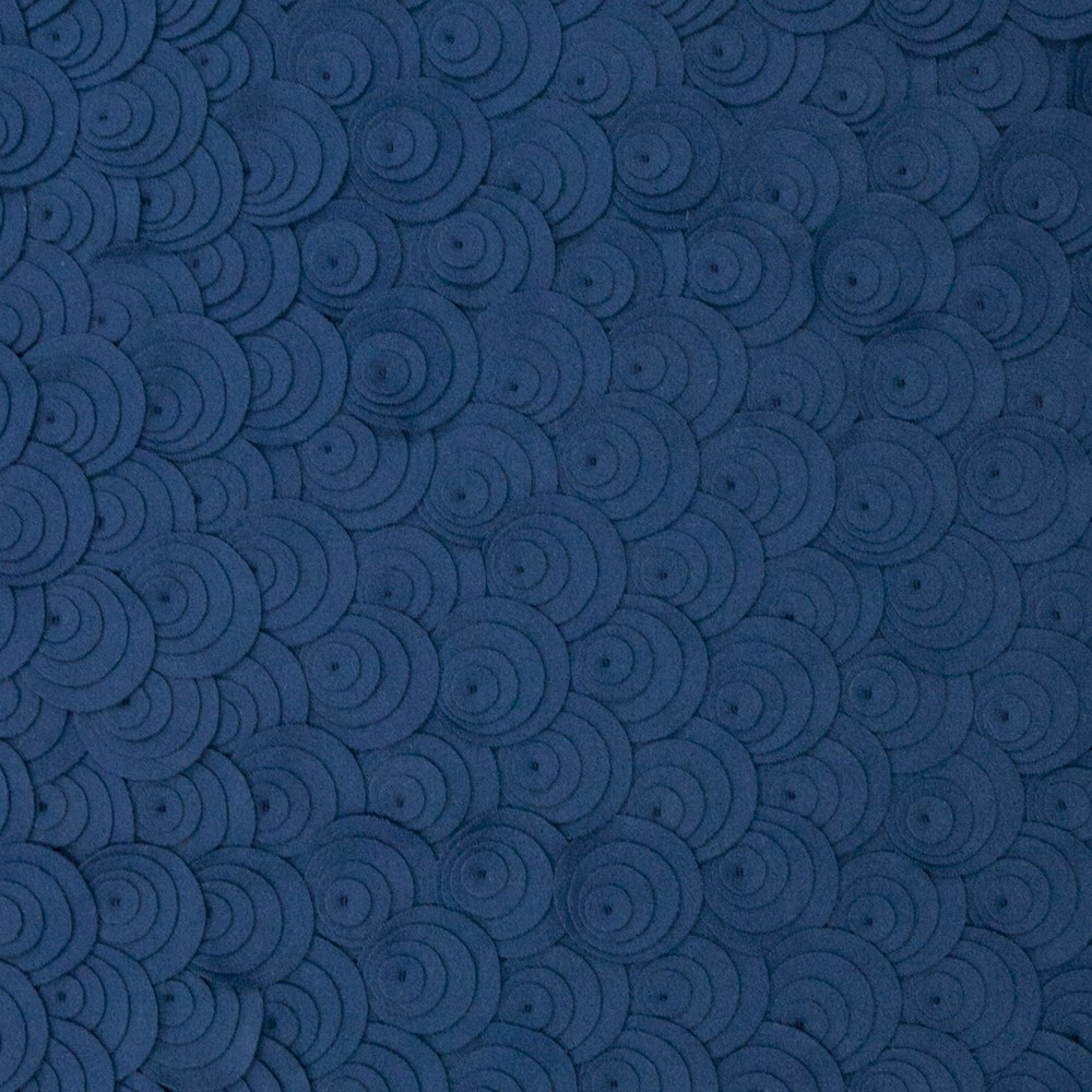 以圓為基礎縫出立體的幾何圖形如魚鱗又似海浪般的裝飾造型,並排在地毯上的時候,又彷彿站在海浪上帶點童貞又寫實的具象造型感,OVELHA圓形圖紋羊毛地毯是一款非常具有存在感的地毯。