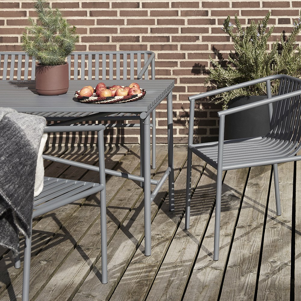 緞帶直紋金屬單椅給你一份超有設計感的戶外休閒氣息!時尚的顏色讓休憩躺椅變的很不同,優雅垂墜感的直條紋從椅背延伸到椅面,搭配上金屬材質,整體視覺相當搶眼,再一旁擺上一張灰白色系的邊桌,就完整了你的休閒度假感,還富有前衛的潮流感。