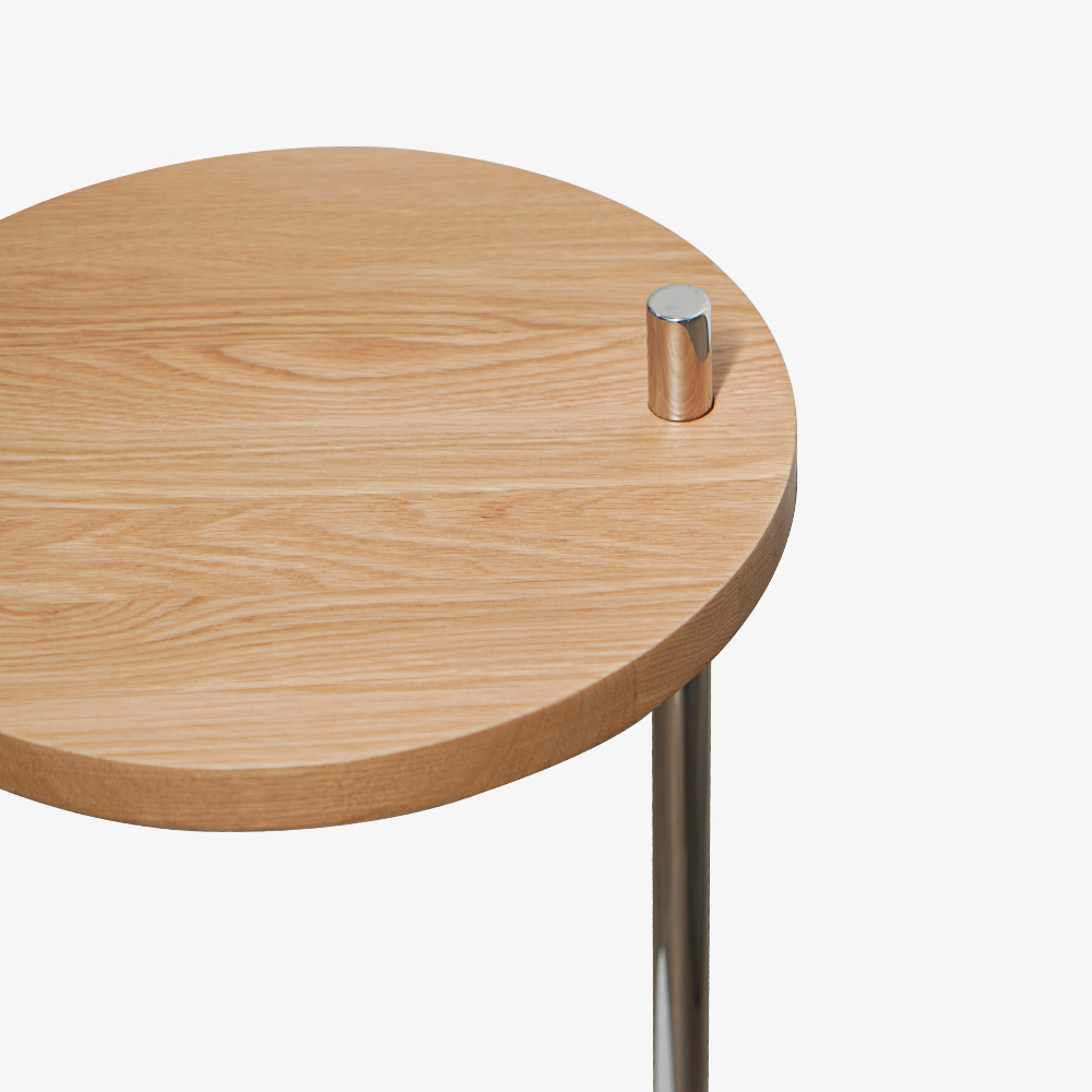 桌面是淺橡木材質,使用金屬支撐,再加上厚實的天然大理石底座整體造型純粹俐落,