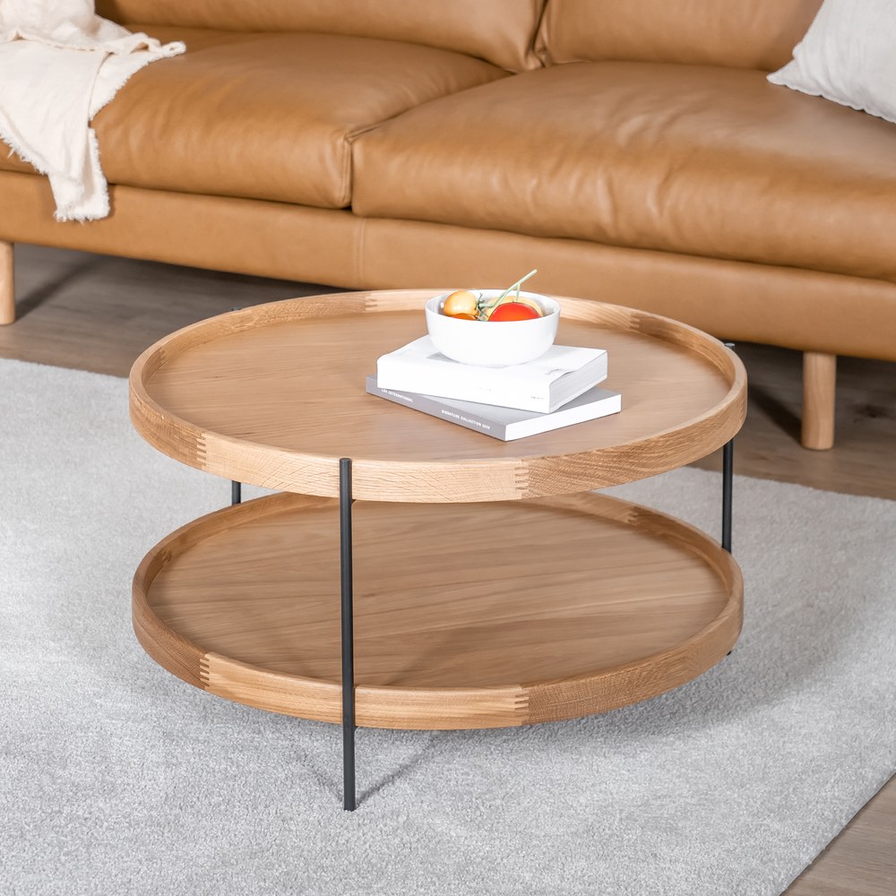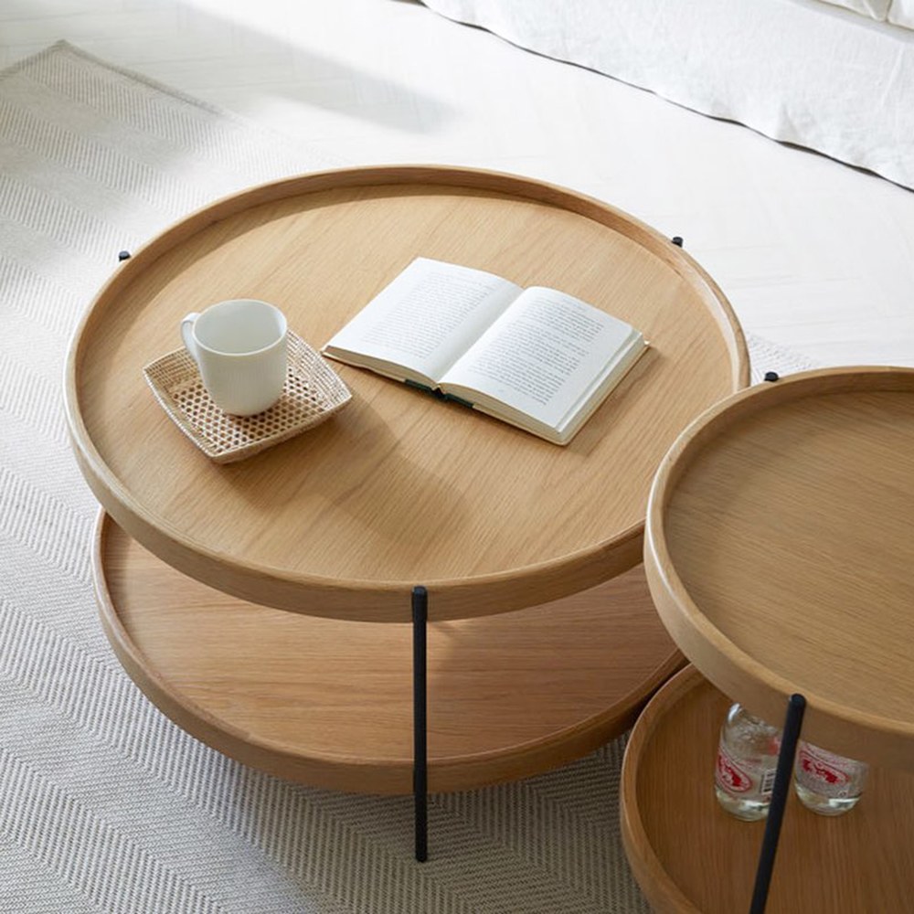 北歐簡約立體邊緣雙層圓形茶几展現了Tolv / Sketch藝術風格精簡化的特性,由細緻桌腳支撐著木頭圓盤桌 ,桌沿有著防止物品掉落的設計,俐落工藝美學多了一份巧思添加無限趣味,隨心所欲地擺上時下流行的乾燥花束,或是在上頭細細栽培出美麗新鮮的多肉植物,放置客廳空間中可以使平凡的每一天都擁有大自然色系的妝點。