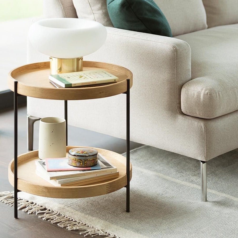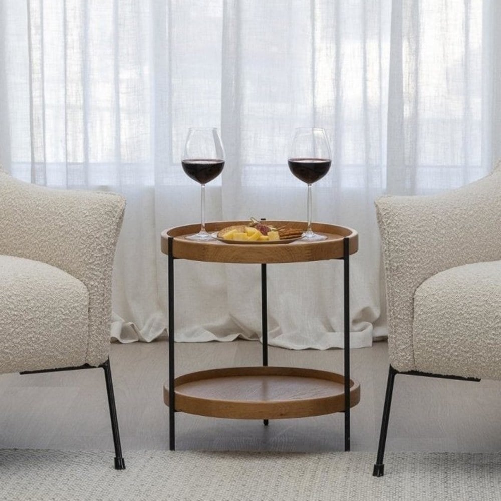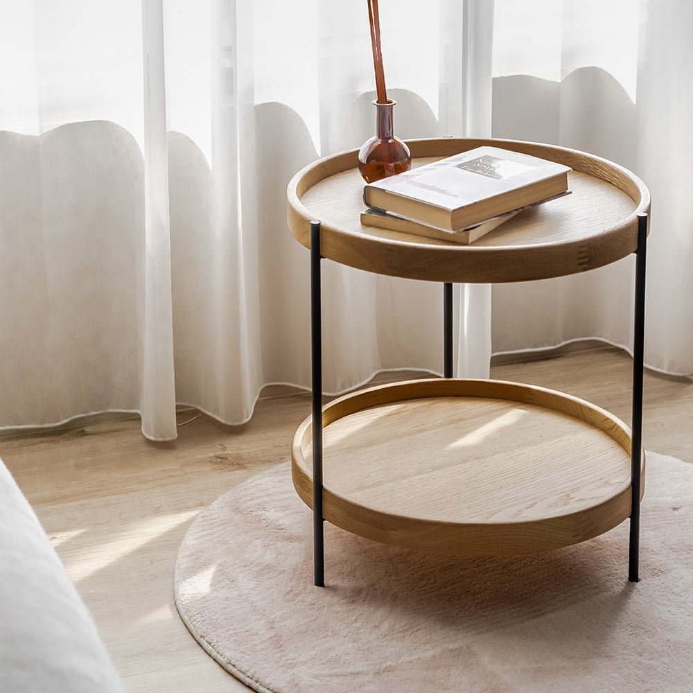 北歐簡約立體邊緣雙層圓形邊桌展現了Tolv / Sketch藝術風格精簡化的特性,由細緻桌腳支撐著木頭圓盤桌 ,桌沿有著防止物品掉落的設計,俐落工藝美學多了一份巧思添加無限趣味,隨心所欲地擺上時下流行的乾燥花束,或是在上頭細細栽培出美麗新鮮的多肉植物,放置客廳空間中可以使平凡的每一天都擁有大自然色系的妝點。
