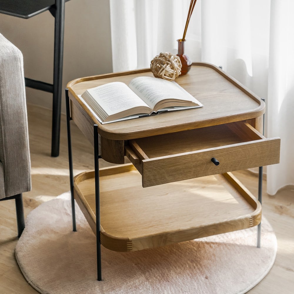 立體邊緣雙層方形邊桌展現了Tolv / Sketch藝術風格精簡化的特性,方形的桌面讓擺放更加得心應手,也可以隨意的與家中的其他邊櫃或書桌搭配,細緻桌腳與桌面一體延伸,桌沿有著防止物品掉落的設計,俐落工藝美學多了一份巧思添加無限趣味,隨心所欲地擺上時下流行的乾燥花束,或是在上頭細細栽培出美麗新鮮的多肉植物,可以使平凡的每一天都擁有不簡單的新風貌。