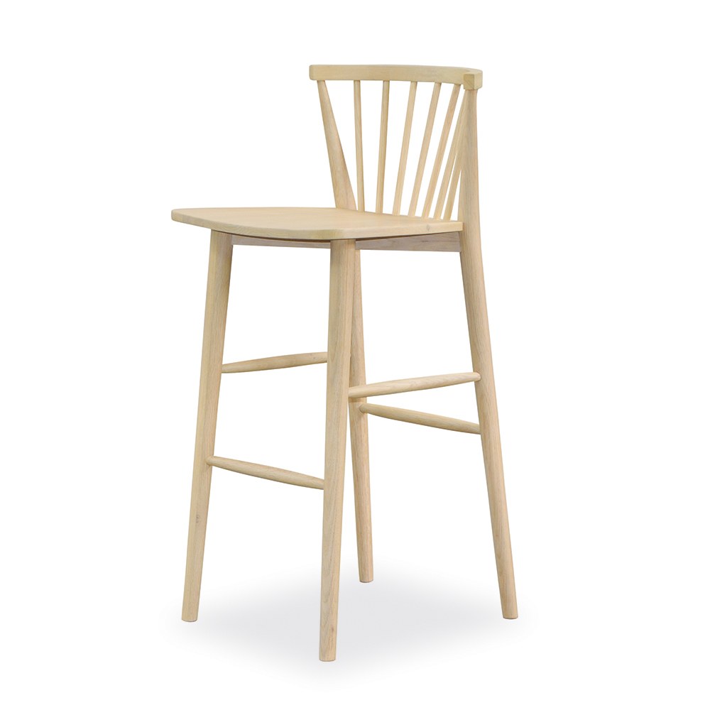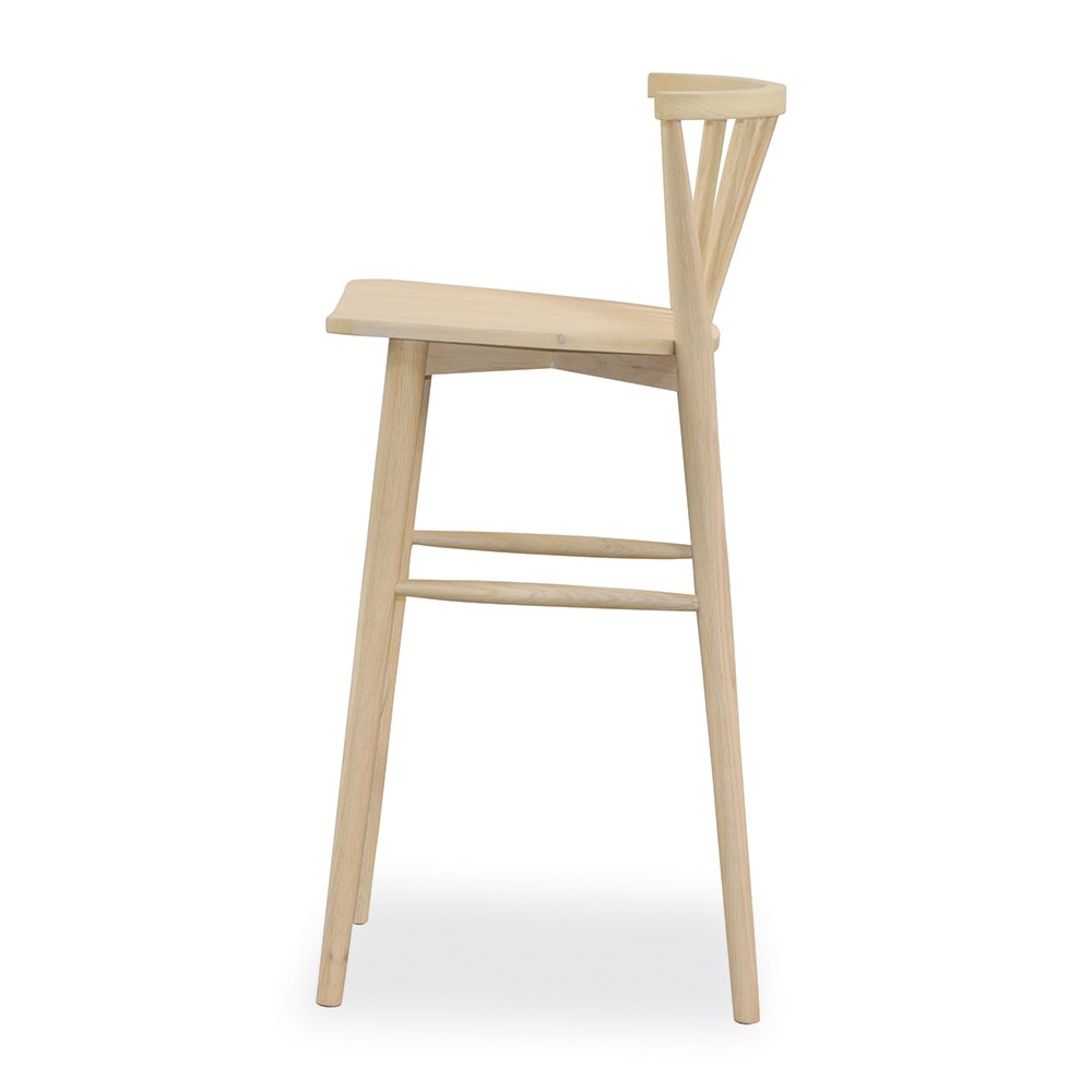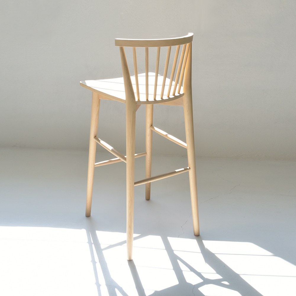 此款北歐簡約高腳款鏤空椅背吧檯椅在椅背處鏤空由圓木細柱組成,拉高了椅腳的比例,適用於桌面較高的吧檯,木質的設計特別適合搭配著手沖咖啡機,在有著舒適陽光的午後靠著椅子品嘗一杯Espresso,椅子搭配上帶有漂浮感的色調,光滑有韻味的漆面隱約倒映著椅背的條紋線條,使整體視覺看起來輕盈有質感,空間也瞬間充滿了清新的呼吸氣息。