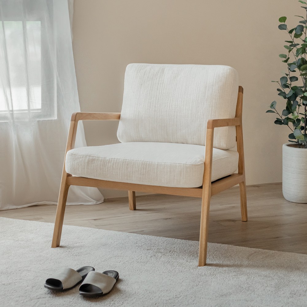 布面的材質,多了一份清爽與休閒感,搭配淺橡木扶手,一種安逸、悠然的Hygge Life生活。