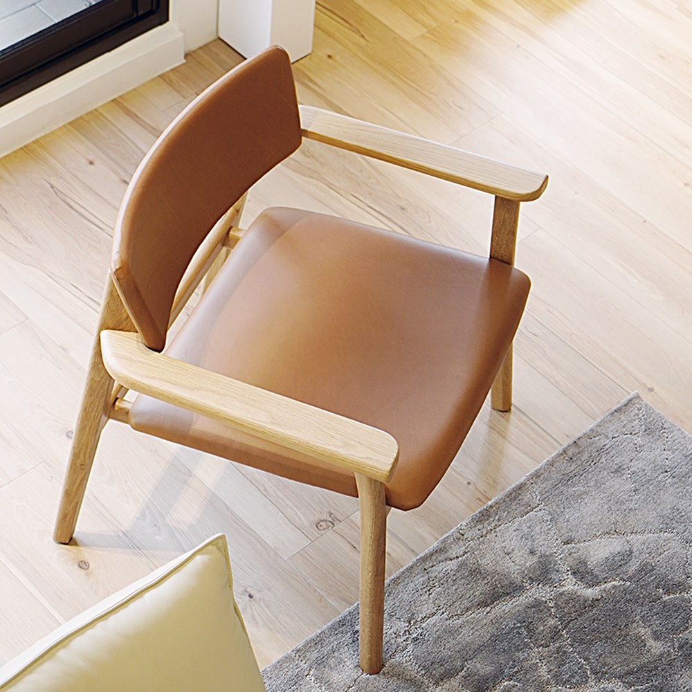 橡木實木打磨出圓潤的邊角與弧度,讓人親近感受天然實木呈現的典藏氣質,應用於室內空間的角落,以雋永設計走入居家。