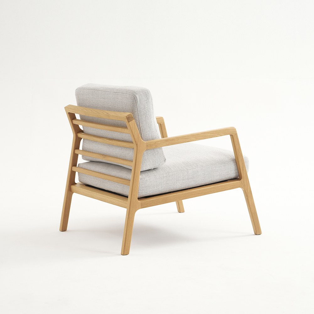 斜背休閒單人沙發有一個精美的橡木框架,梯字型的傾斜度就像是為午後的打盹時光訂製一般,鬆軟的椅墊讓人可以更悠閒的久坐,搭配一張小邊桌或茶几就可以愜意的倚靠著,看本書再享受陽光灑下的氛圍,讓人適時的享受到生活中的寧靜與美好。