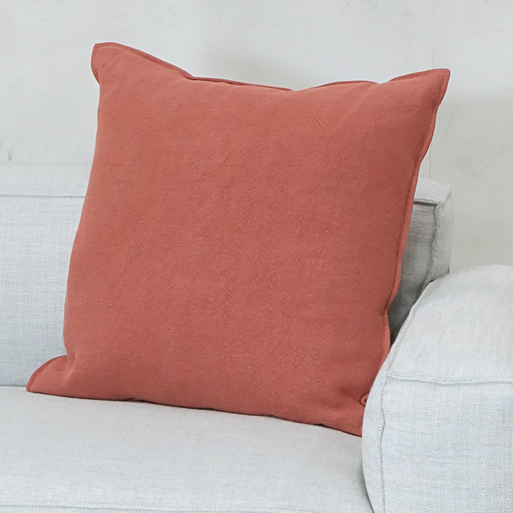 積木抱枕,靠墊用最優質歐洲棉麻製成,並經過石洗特殊處理,創造出柔軟、低飽和的復古感覺,細節採雙針法式縫邊,選有優質微混紡的內襯,取代羽毛,對環境友善,也是為永續進一份心力。