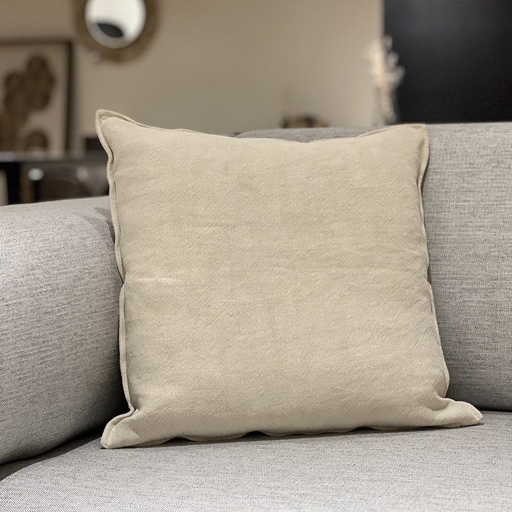 積木抱枕,靠墊用最優質歐洲棉麻製成,並經過石洗特殊處理,創造出柔軟、低飽和的復古感覺,細節採雙針法式縫邊,選有優質微混紡的內襯,取代羽毛,對環境友善,也是為永續進一份心力。