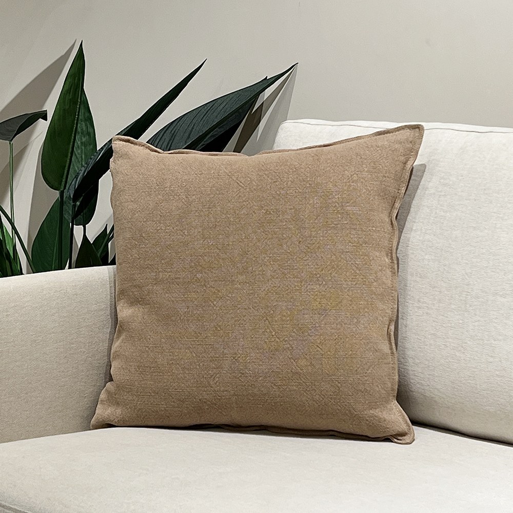 積木抱枕,靠墊用最優質歐洲棉麻製成,並經過石洗特殊處理,創造出柔軟、低飽和的復古感覺,細節採雙針法式縫邊,選有優質微混紡的內襯,取代羽毛,對環境友善,也是為永續進一份心力。