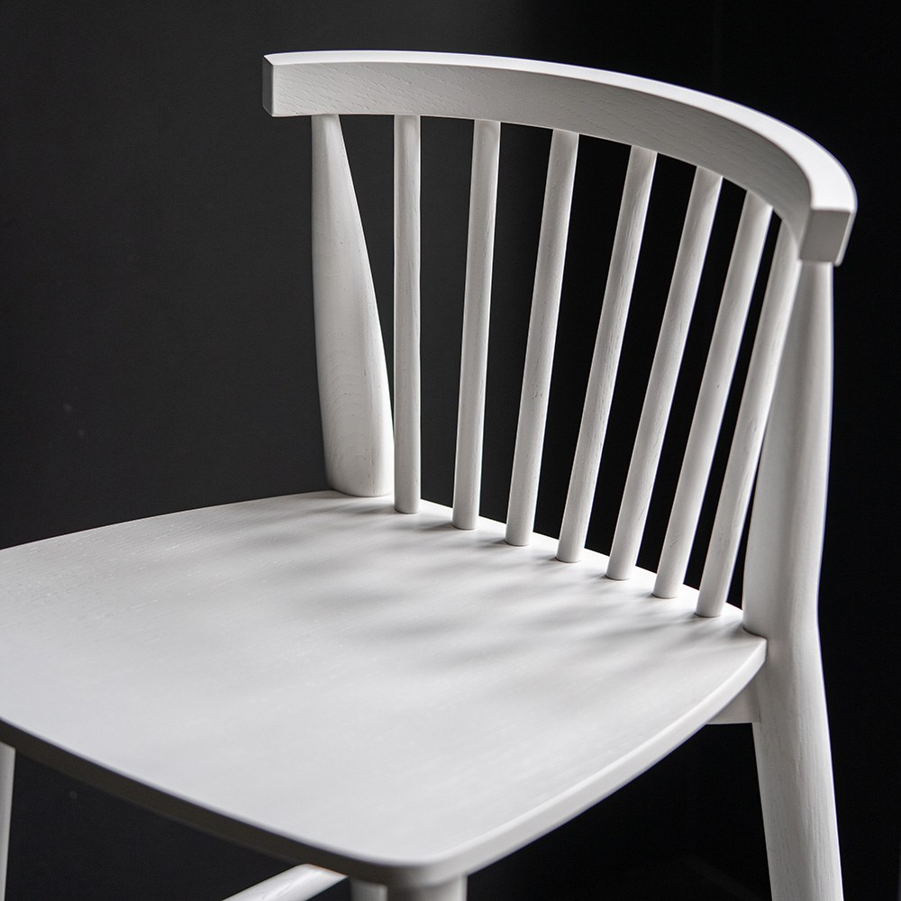 此款北歐簡約高腳款鏤空椅背吧檯椅在椅背處鏤空由圓木細柱組成,拉高了椅腳的比例,適用於桌面較高的吧檯,木質的設計特別適合搭配著手沖咖啡機,在有著舒適陽光的午後靠著椅子品嘗一杯Espresso,椅子搭配上帶有漂浮感的色調,光滑有韻味的漆面隱約倒映著椅背的條紋線條,使整體視覺看起來輕盈有質感,空間也瞬間充滿了清新的呼吸氣息。