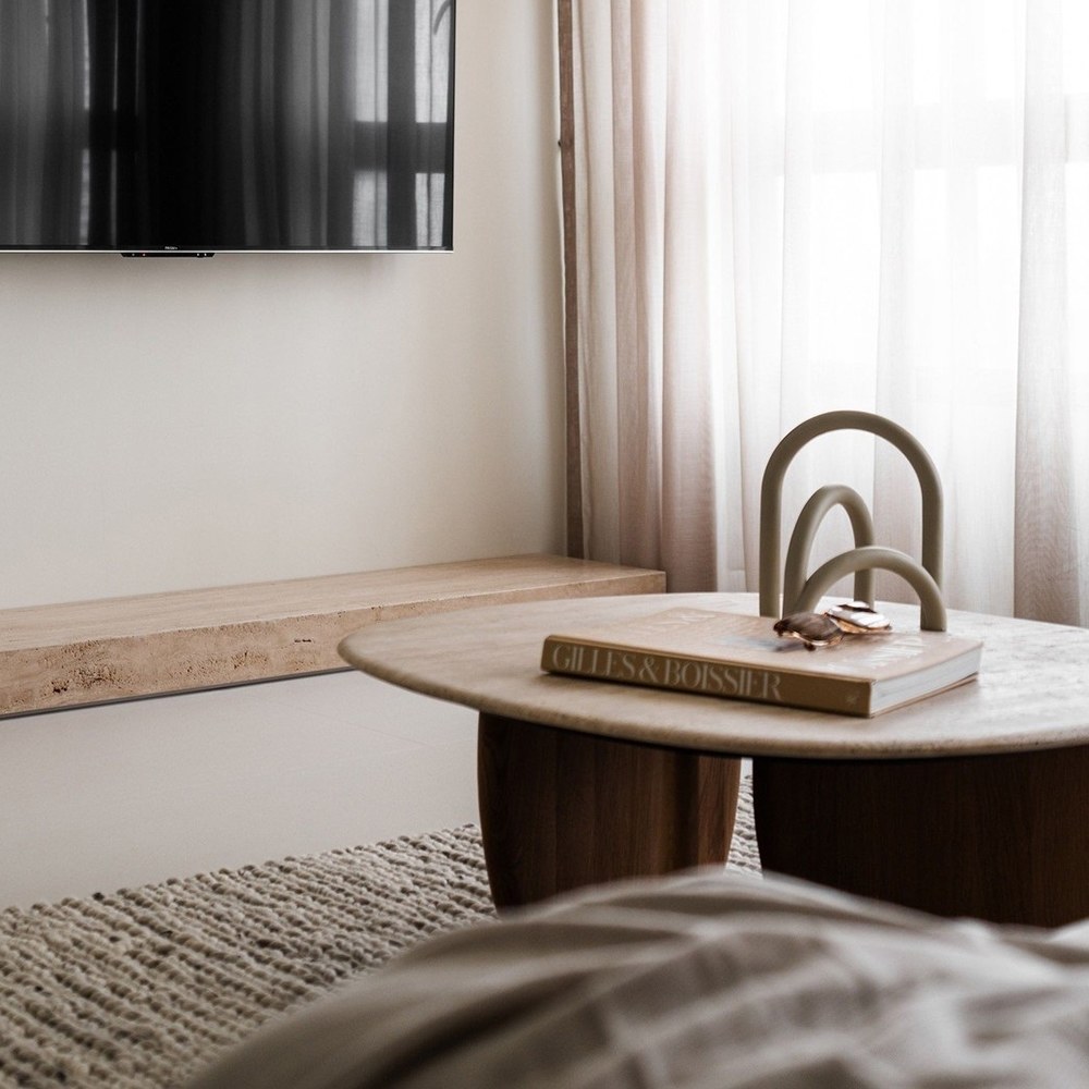 桌面與桌腳都以圓角收邊,是款細膩且照顧使用者的好設計,具有現代摩登風情。三角摩登洞石茶几,獨特的錯落式桌腳設計,恰好在桌面下形成了一個三角狀,而桌面則是質樸自然的洞石,能為居家帶來流暢的典雅氣質,搭配各式沙發都相當有氣質。