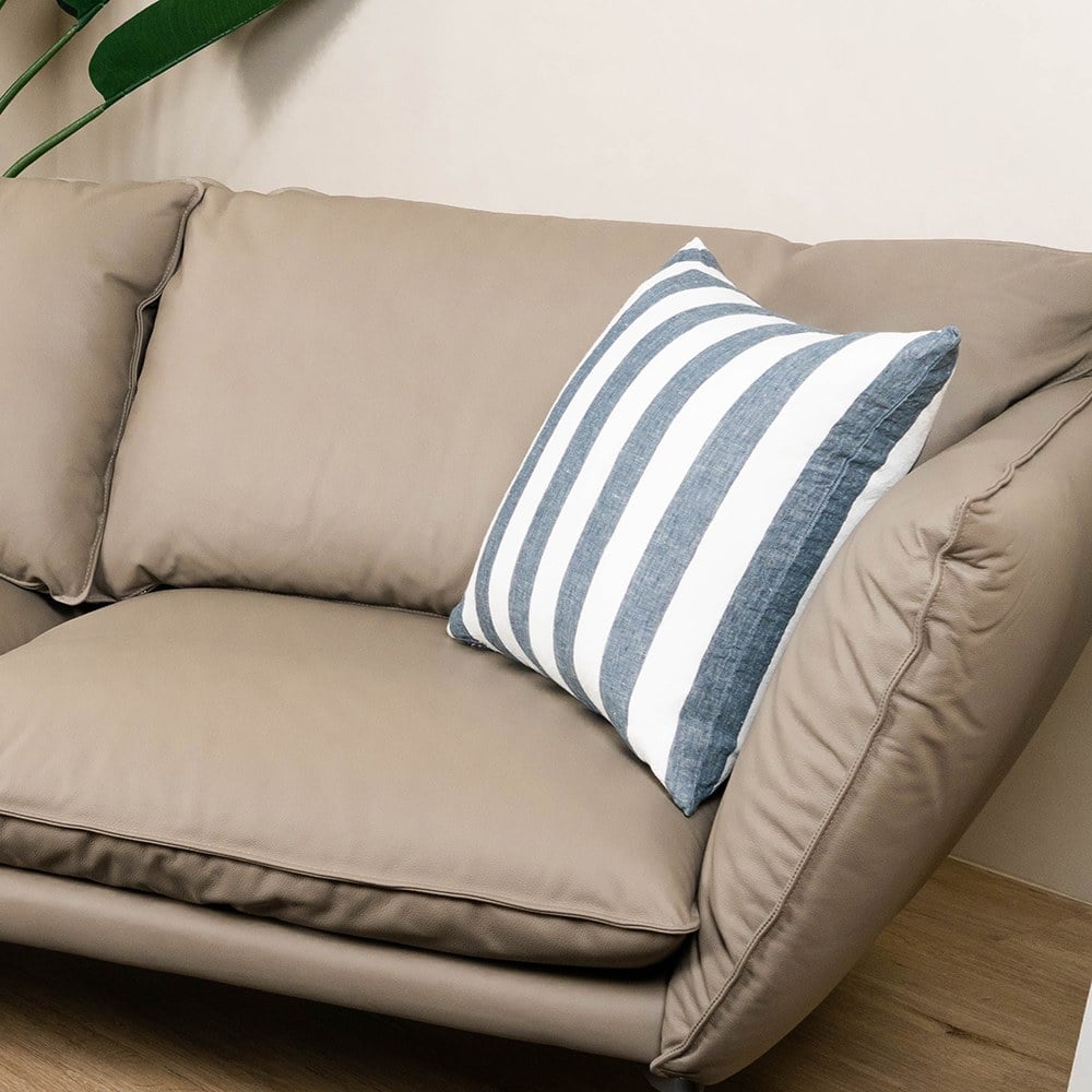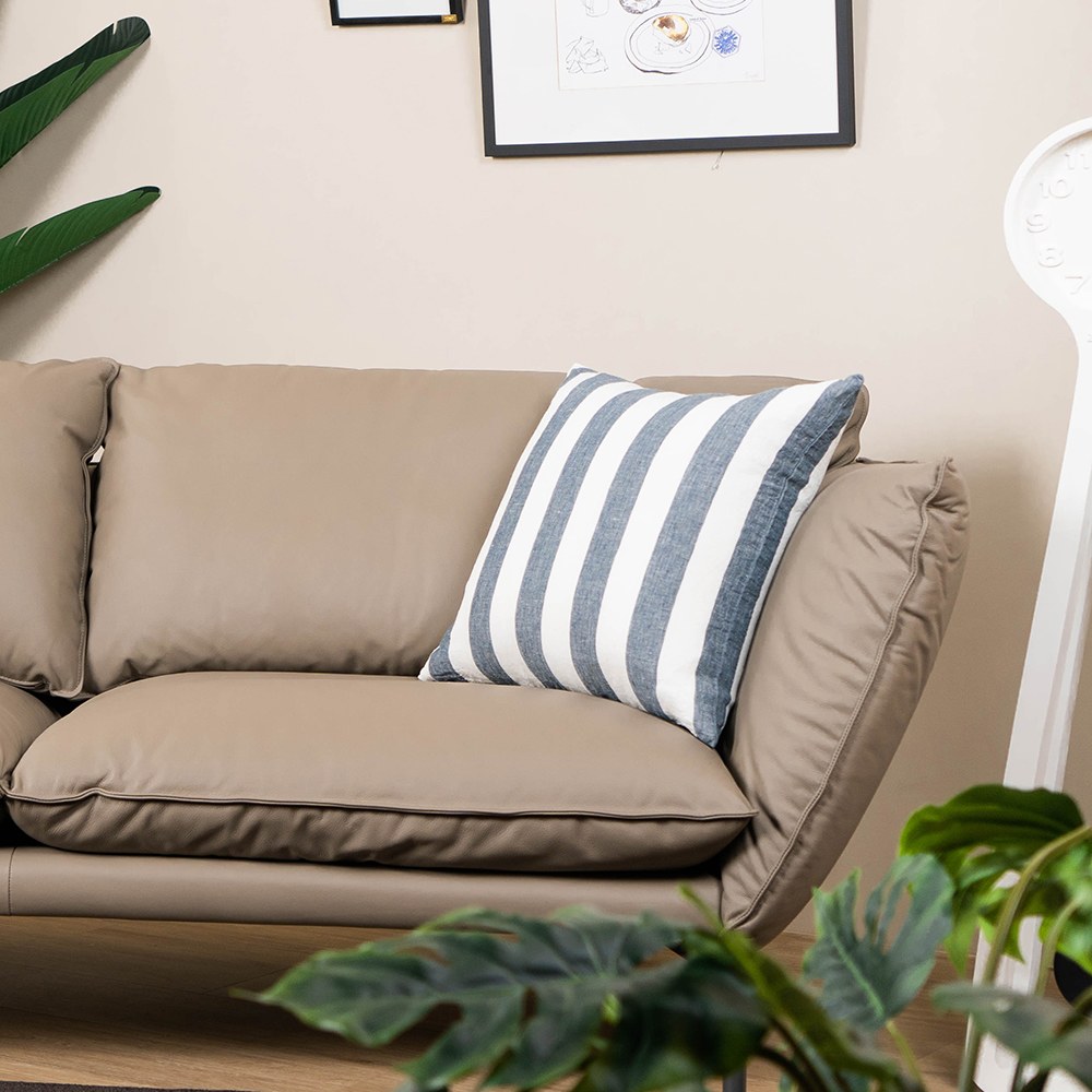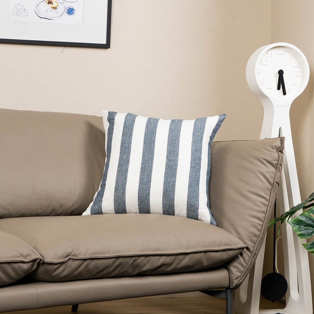 亞麻質感的靠枕給人一股清新的度假風情,純粹簡單的條紋相間在其中,可以搭配在各式的沙發或單椅上,你可以靠著看書或抱著看一部電影,生活就該如此從容美好,簡約條紋正方形靠枕為居家增添一個美好而舒適的小細節。