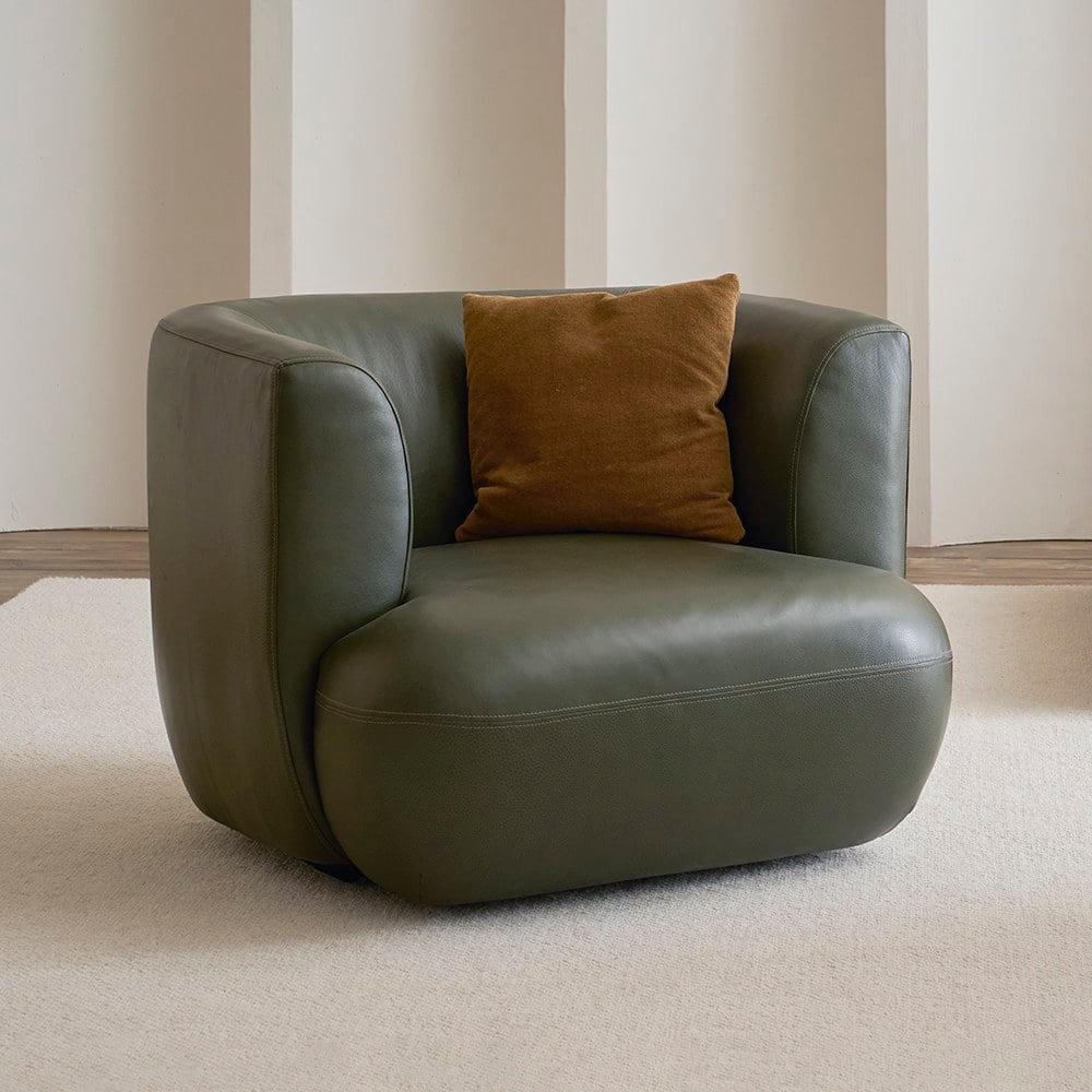 Tolv Sophie索菲皮革單人沙發,溫柔包覆,為放鬆而生。擁有如繭般的包覆造型與寬厚舒適的扶手,結合美感與機能,是為舒適生活量身打造的理想之選。人體工學設計搭配寬敞座面,無論是午後閱讀、放空小憩,或是靜靜沉澱一整天的思緒,都能讓身心徹底放鬆、自在呼吸。