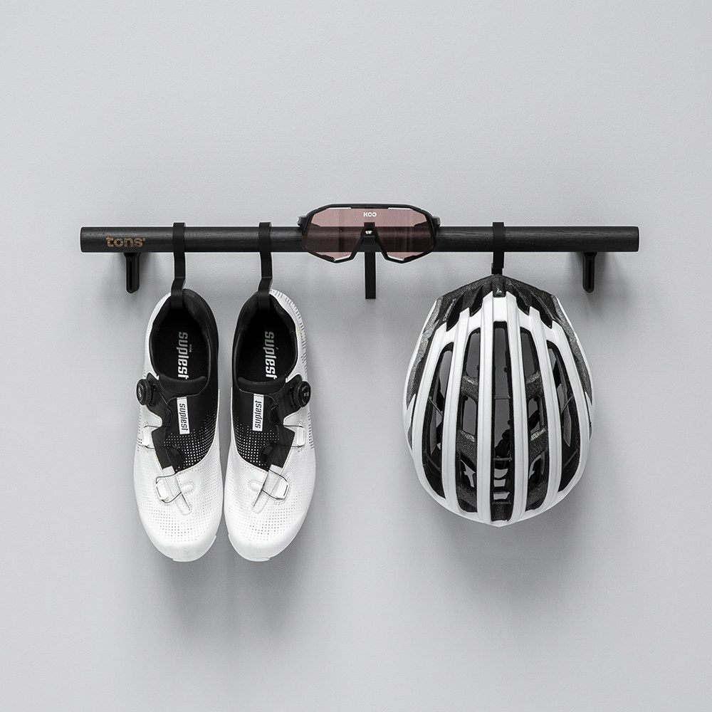 Tons Bike自行車配件收納掛架是完美的儲存與展示空間,鞋子、太陽眼鏡、頭盔皆能條有理存放。