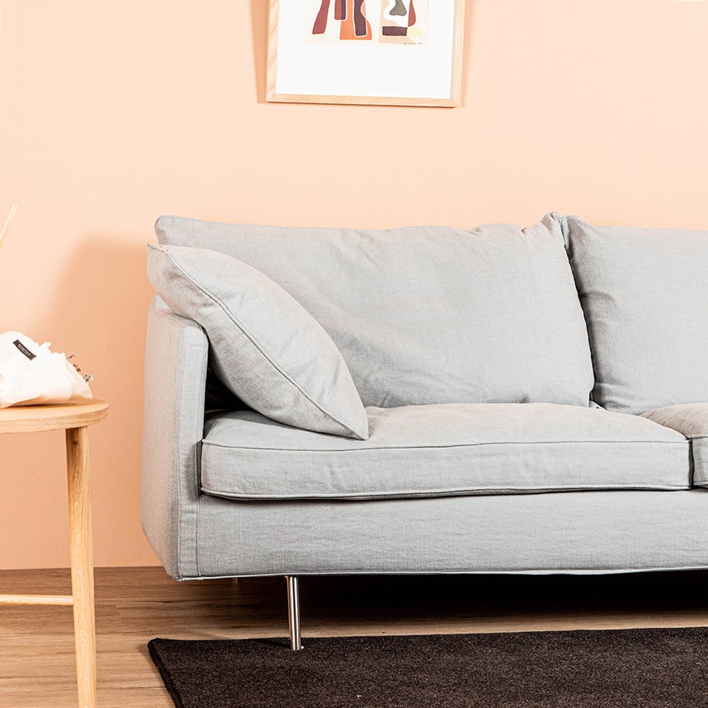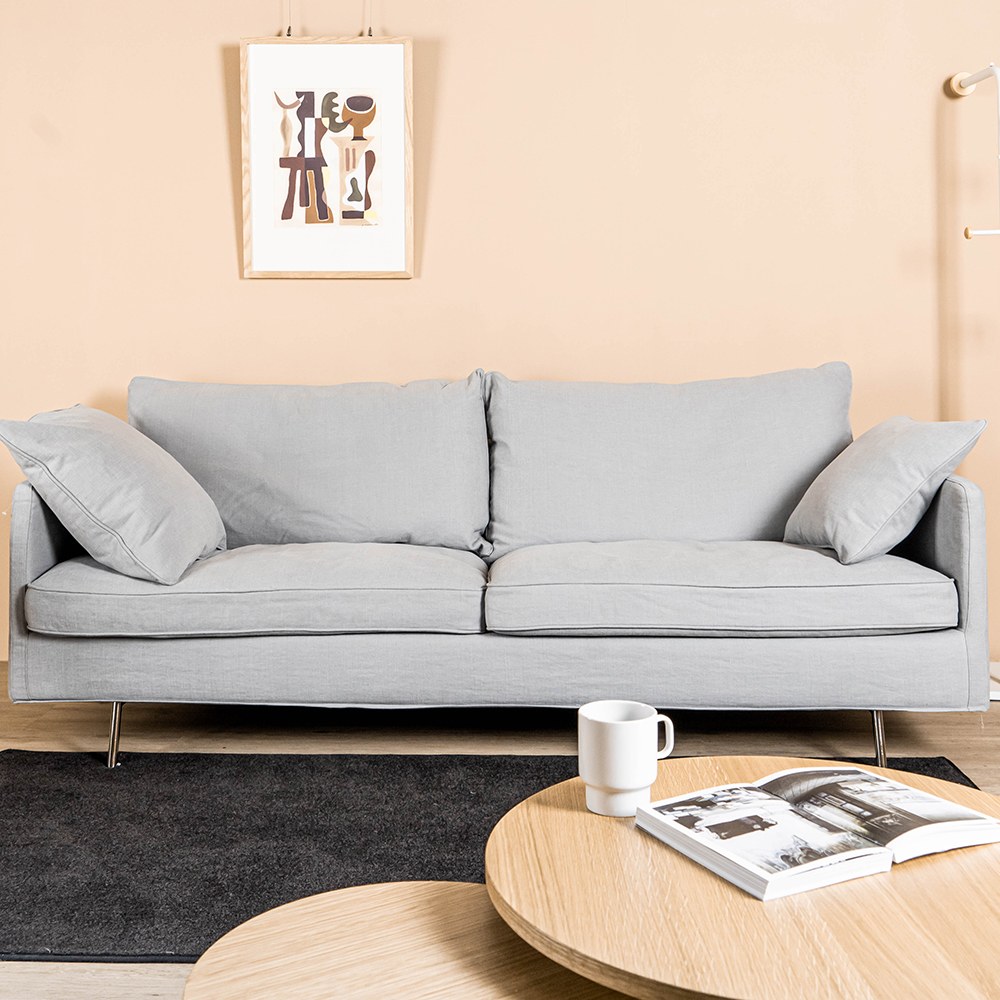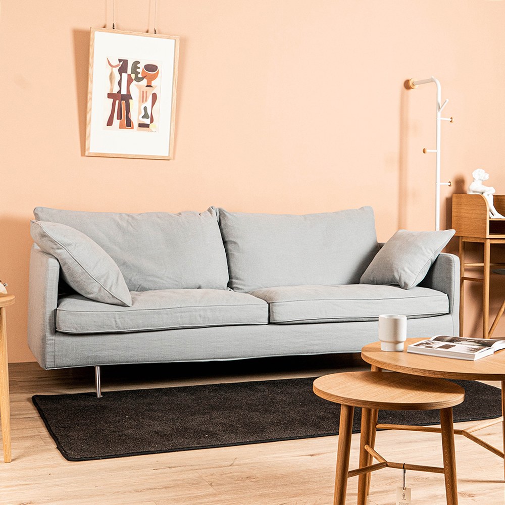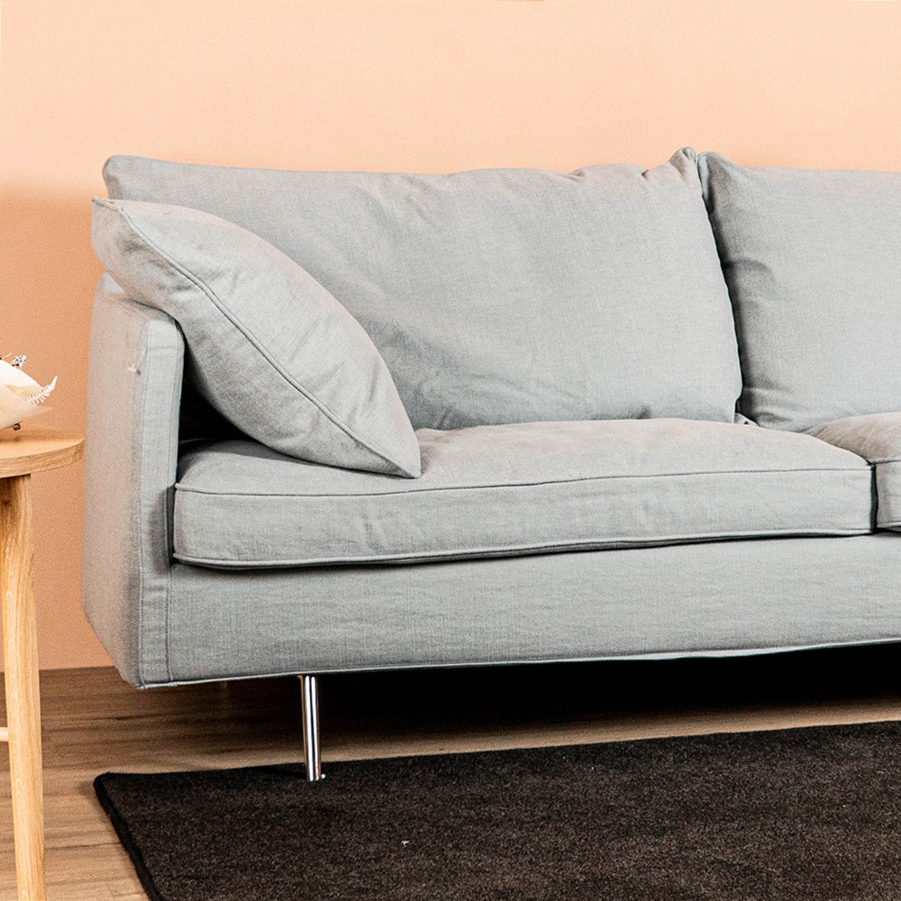Julia俐落金屬腳三人沙發 - 融合設計與舒適的極致之作 Julia三人沙發以其極簡的設計與金屬椅腳,創造出一個結合設計與舒適的極致之作。這款沙發完美體現了現代簡約風格,為您的居家環境帶來高雅感滿分的氛圍。 沙發的靠墊以柔軟的羽毛填充,確保您坐下時感到極致的舒適。大型靠墊和兩側的可移動抱枕提供了卓越的支撐,使您坐在這款沙發上感到輕柔而舒適,宛如融入蓬鬆的羽毛堆中。坐在這裡,您不禁會感受到極致的舒適,甚至不知不覺地沉入夢鄉,享受著完美的休憩時光。