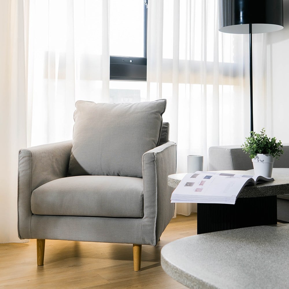 Sally沙發擁有高而厚實的大靠背,符合我們台灣人喜歡的頭部也有支撐的款式,是一張全家大小都適宜的親子沙發。