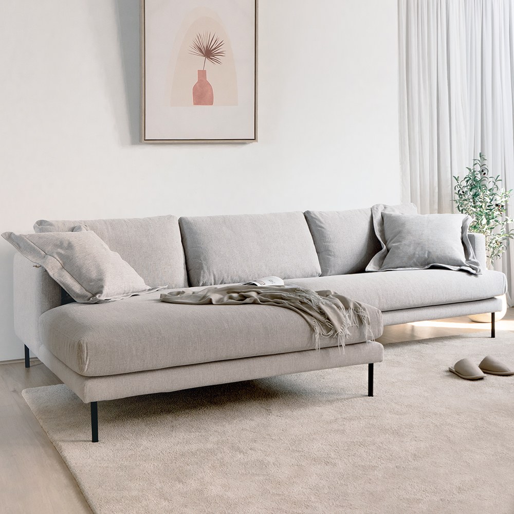 Britt沙發的魅力不僅僅體現在其一字形版本,還有適合四人同時坐的L型版本。這款L型四人沙發延續了Britt的經典特質,同樣融合了斯堪的納維亞的簡約美學和家庭團聚的歡樂,但它更大、更寬敞,能夠一次容納多位家庭成員或朋友,讓人倍感親切。