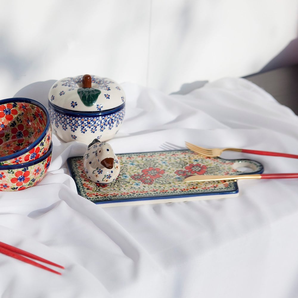 小紅花園長形陶瓷托盤能作為食用餐盤,又或是裝飾用托盤,讓居家的佈置更加豐富有活力,注入新鮮的莊園鄉村氣息。