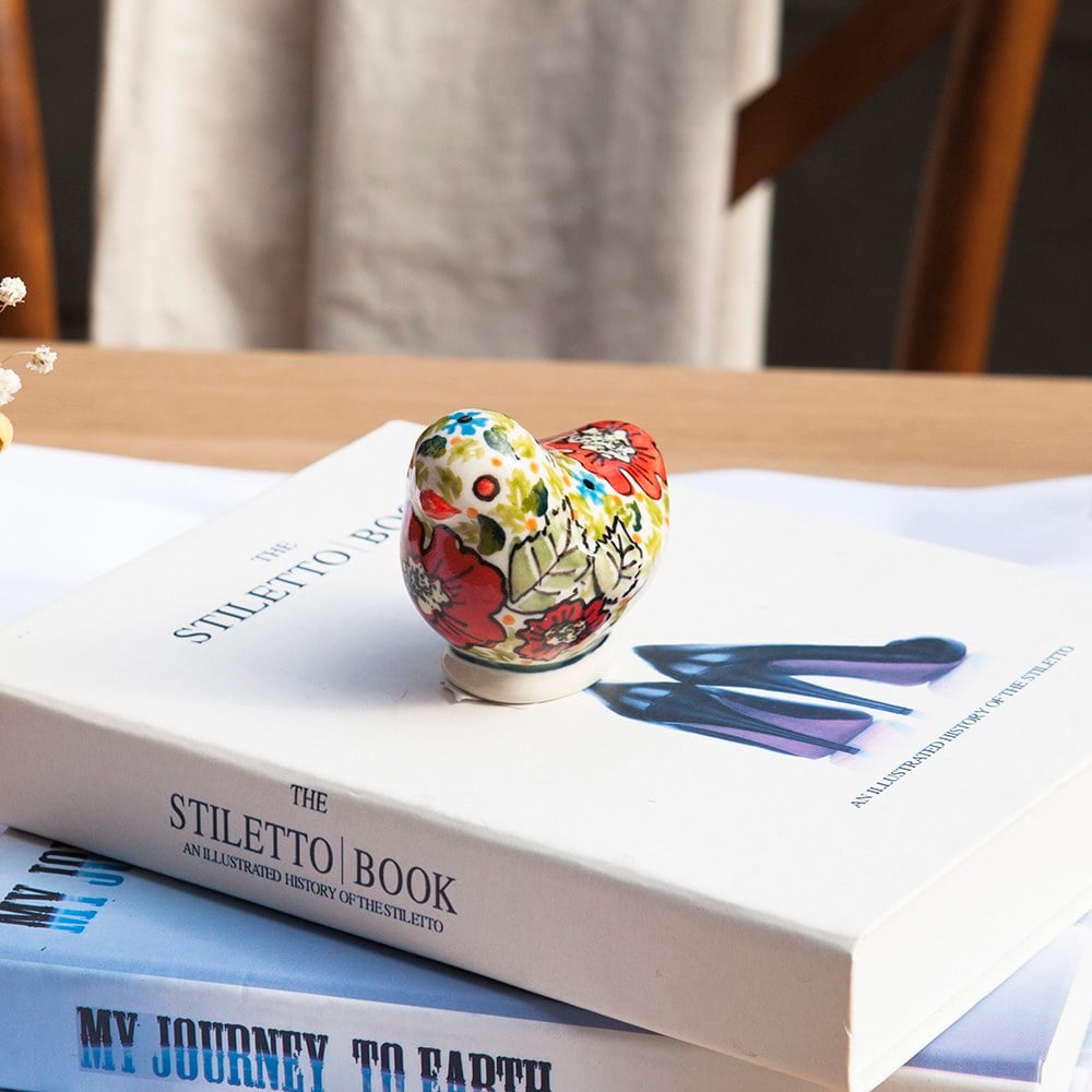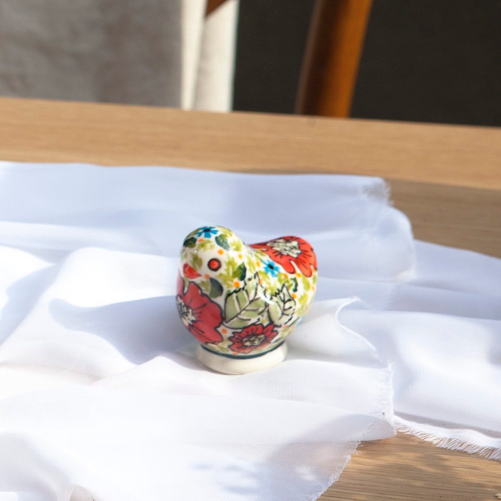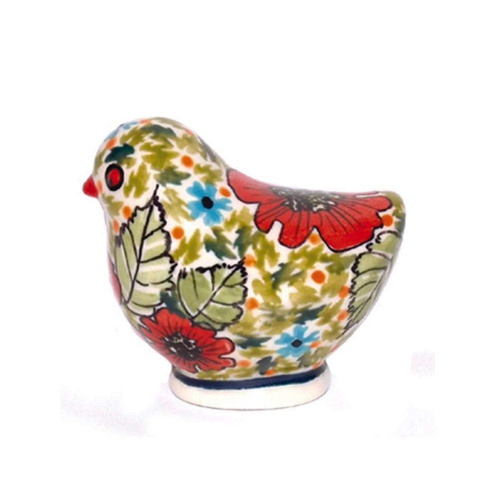 小雞身上的圖紋像是艷紅的紅花綻放於青草之間,一如春日的女神對你張開雙手,邀請你迎接暖陽與花香,紅綠藍的鮮明對比,讓一切更加活潑有新趣!將這樣的擺飾佈置在家中,能讓居家的佈置更加豐富有活力,注入新鮮的莊園鄉村氣息。