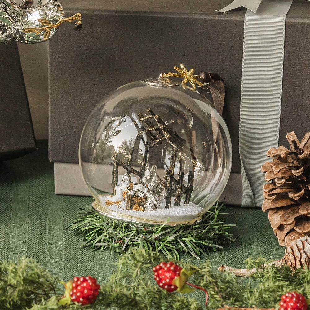 聖誕節是一個讓千里外的親朋好友都能夠有所連結的節日,更串聯全世界不分國界與文化的響應與歡騰,是一個充滿溫馨與希望的佳節,一場別出心裁的銀色耶誕,就用華麗大方的 Michael Aram 耶誕吊掛飾品來打造,每一個飾品運用了不同的故事寓意所設計,其中包含了許多祝福和期許的心意,可以作為禮品贈與想念的人,或是給自己一份紀念吊飾都別具意義,聖嬰誕生球型耶誕吊掛飾品是紀念聖經所記錄耶穌降臨的場景,也象徵每一個生命降生在這個世界上的感動與奇蹟,嬰兒誕生時被滿滿的祝福所包圍著,便是為新生命注入幸福與期望的開始。