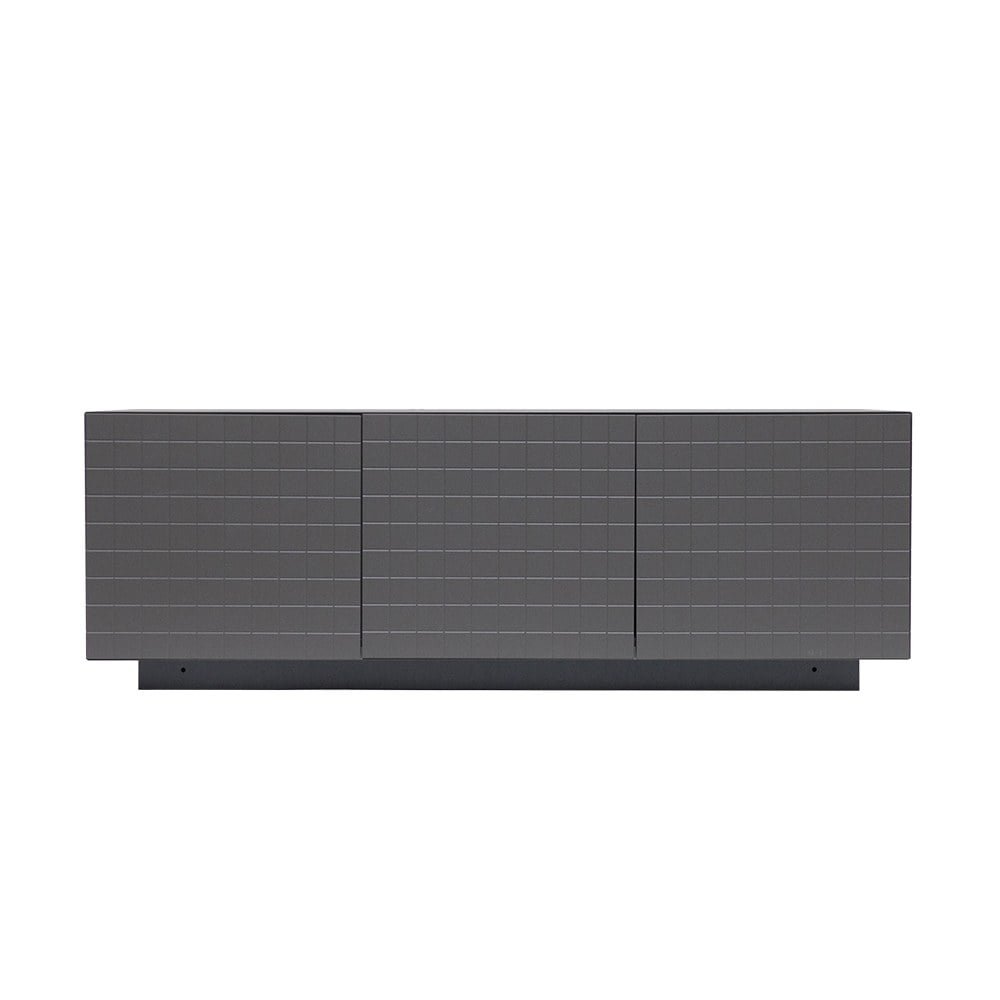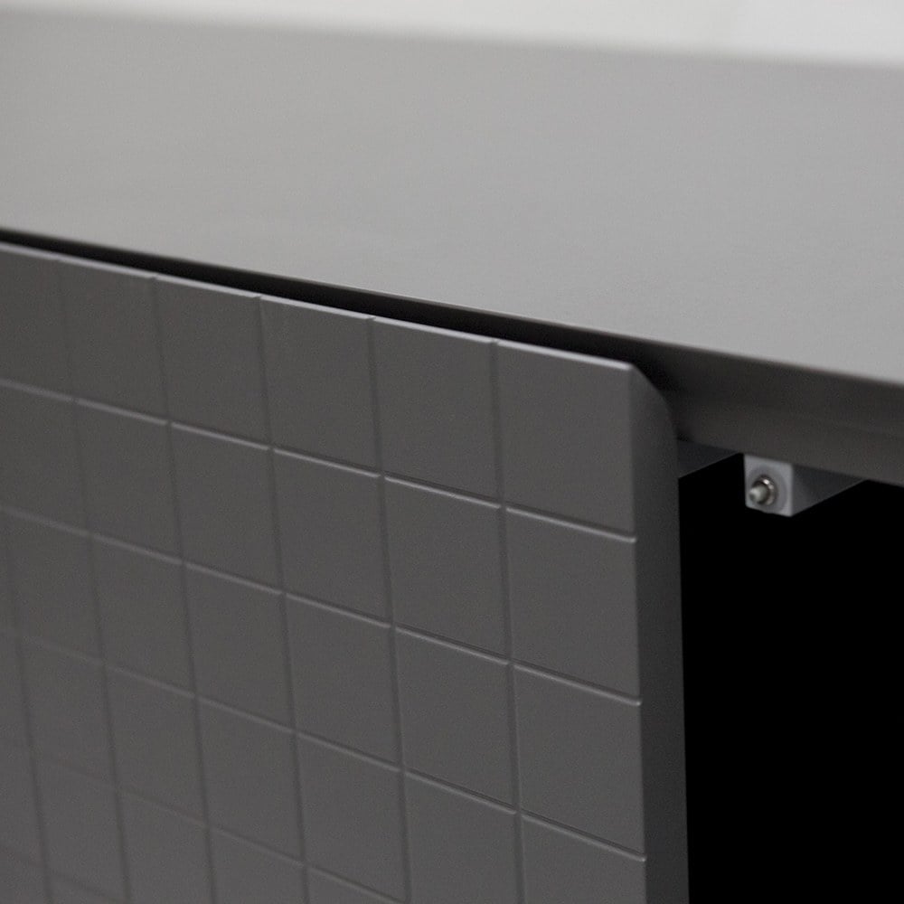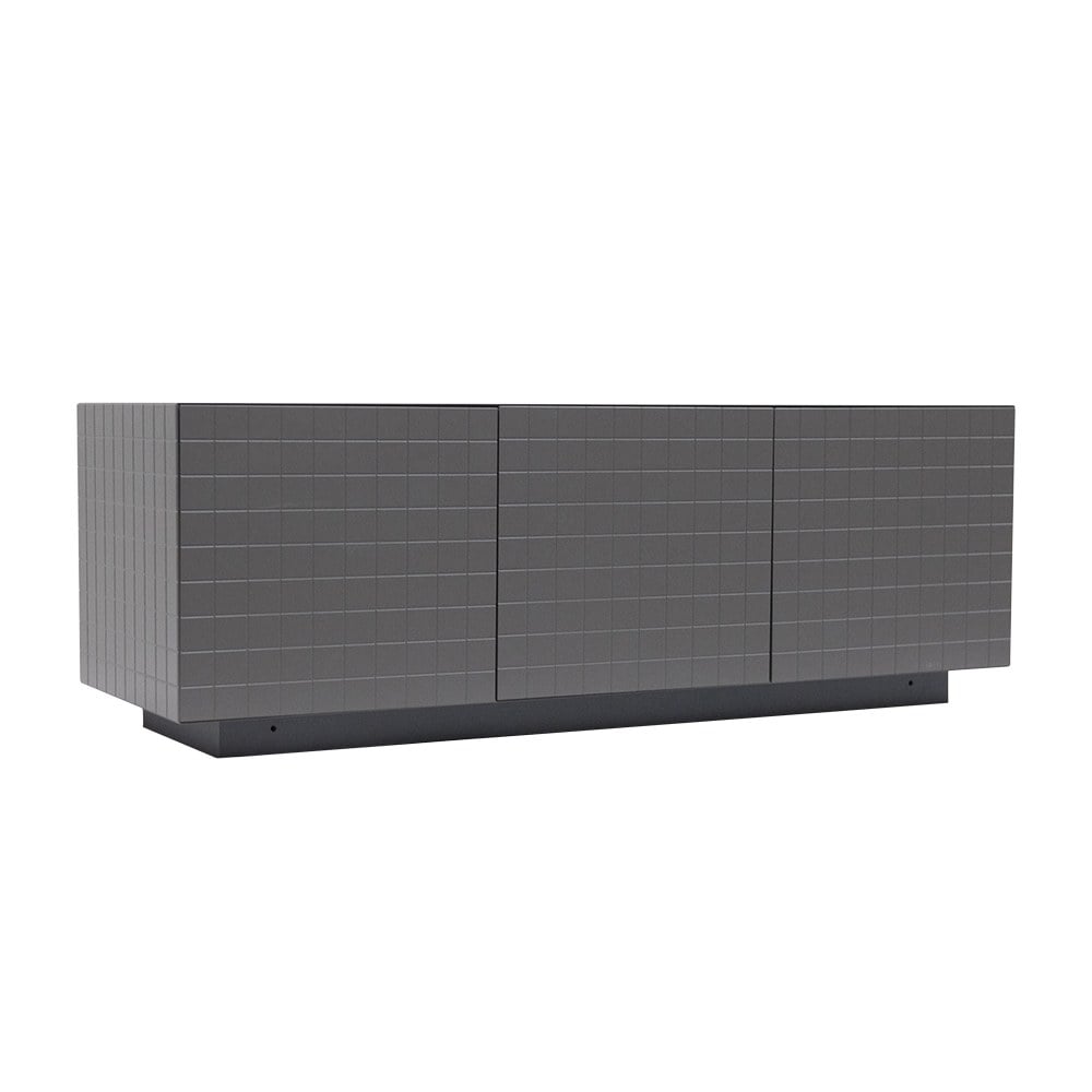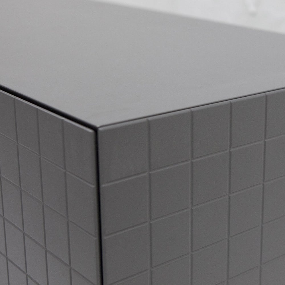 來自義大利 TOSHI櫃體上低調的格狀紋理,靈感來自於東京繁華的街道中那高聳的建築物,每個櫃體都鑲有大小不同的馬賽克圖案裝飾,猶如坐落於城市中大廈建築那排列整齊的矩陣玻璃帷幕,調和各式比例高度和色調的顏色猶如大都會中形形色色的建築體,特殊的四方與金屬底座彷彿將城市中錯落的輪廓縮影放置於居家空間中。