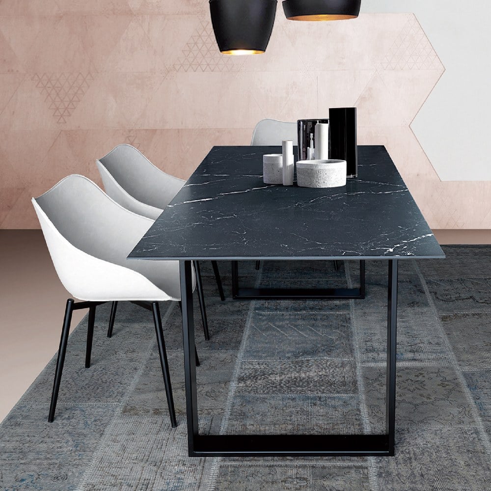 此款餐桌桌面採用義大利Laminam品牌的陶瓷板材,Laminam以生產陶瓷板材、陶瓷磚款聞名,獨家專利技術研發大尺寸且厚度輕薄的陶瓷板材,除了應用於一般常見的室內區域,也常被選用來作為建築外牆設計,富有多項特點的陶瓷板材為生活帶來更多創新的設計與用途。