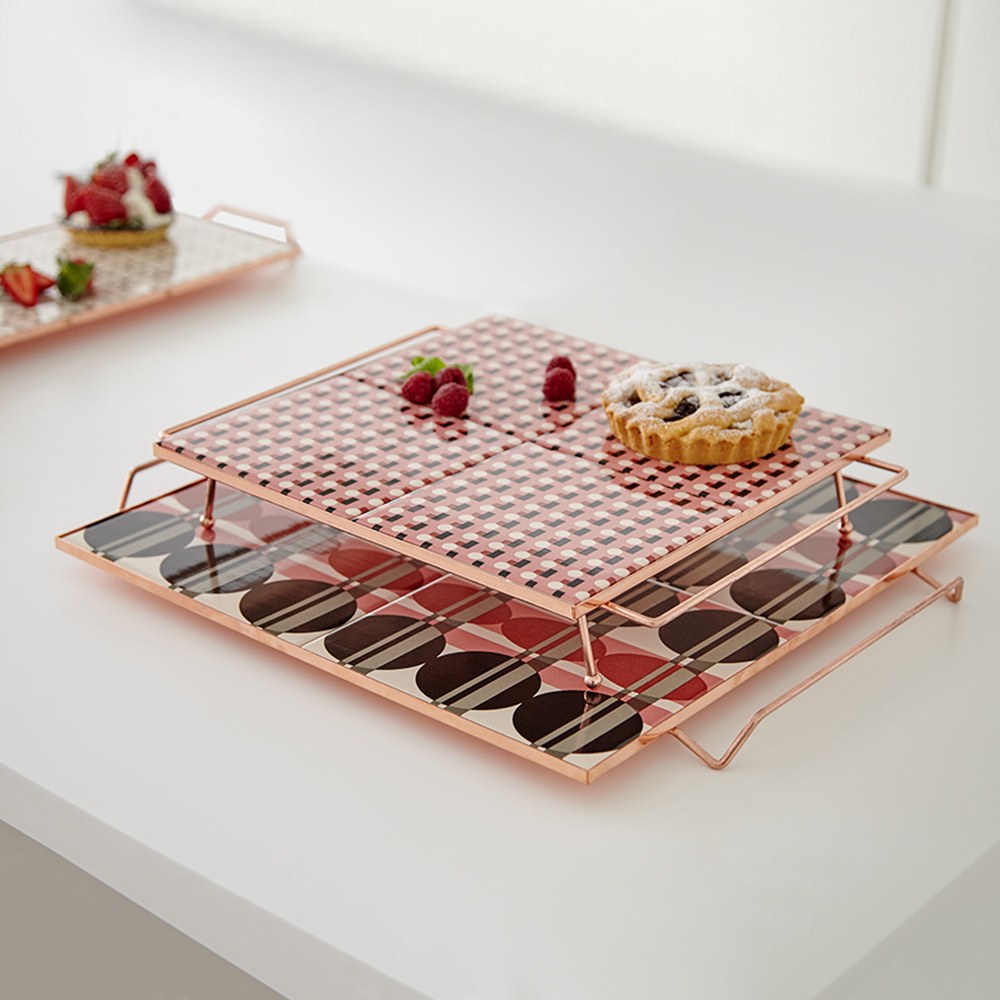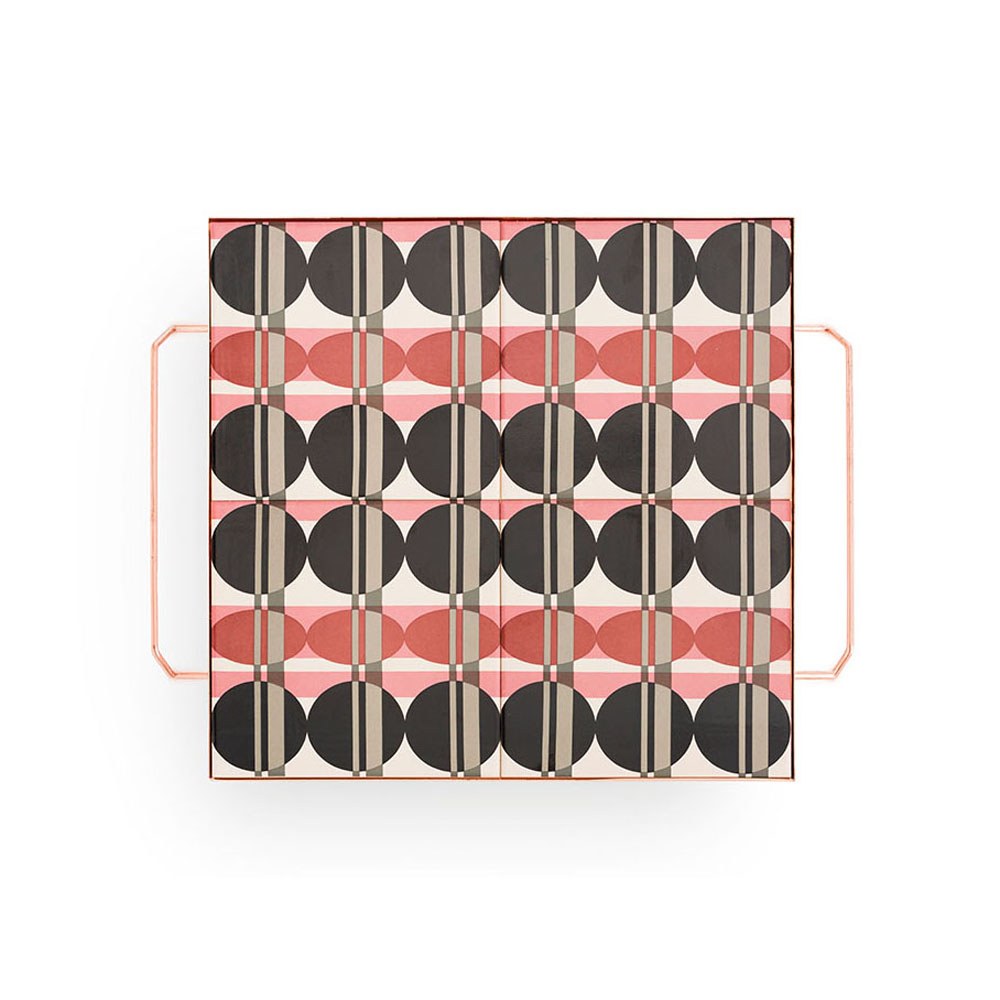 這個磁磚托盤如同南歐西班牙一樣熱情、精緻和開朗。整個系列採用創新的形狀產生不同的擺放方式,結合了銅和陶瓷的材質,為經典概念增添了新的轉折。陶瓷與金屬帶出完美質感,把手及底部選用迷人的玫瑰金,結合設計師調配的各種色彩,擺放上水果或是點心,讓來自南歐迷人的藝術托盤伴你度過整個艷夏。