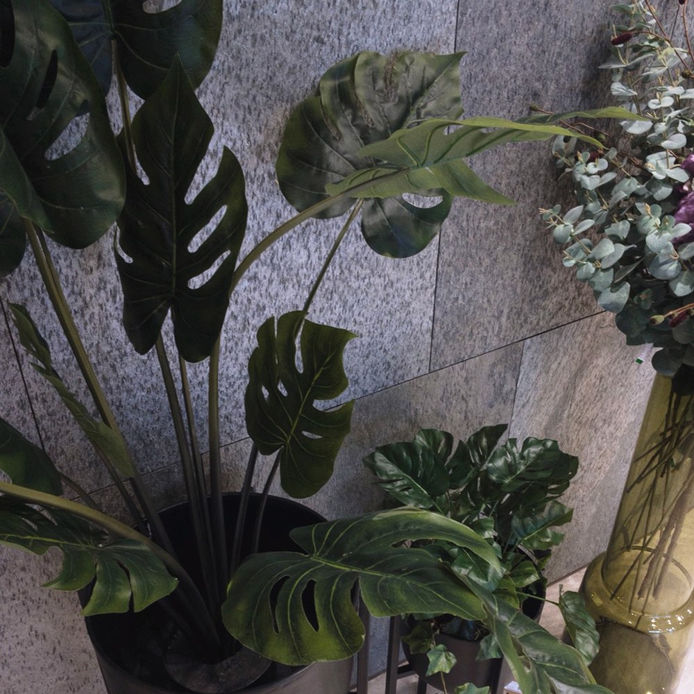 電信蘭因為有著裂痕與孔洞,株形優美,葉片形狀奇特、葉色也很濃綠,像是烏龜殼一般而得名,又稱龜背芋、蓬萊蕉,被廣泛運用在切花花材中,也時常在造景與室內盆栽設計中看見。