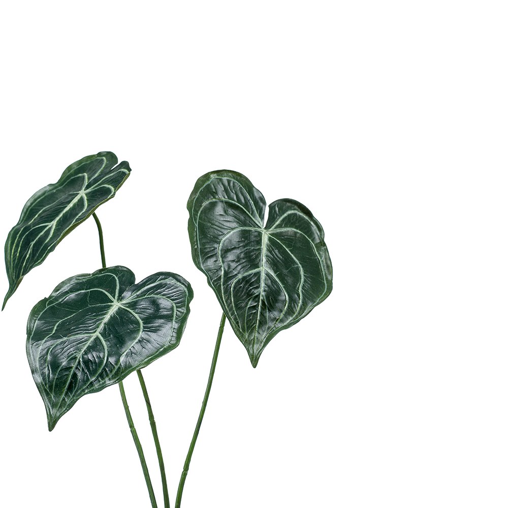 圓葉花燭鮮明的葉面和葉脈相當受人注目,受歡迎程度也和龜背芋一類的觀葉植物並駕齊驅,讓你的四季都綠意盎然很有生命力,心型的葉片也很討喜,把他插在簡單的花瓶中就能讓室內空間很有生氣,又或是和其他白色系花朵搭配,也會是很醒目的風格配飾。