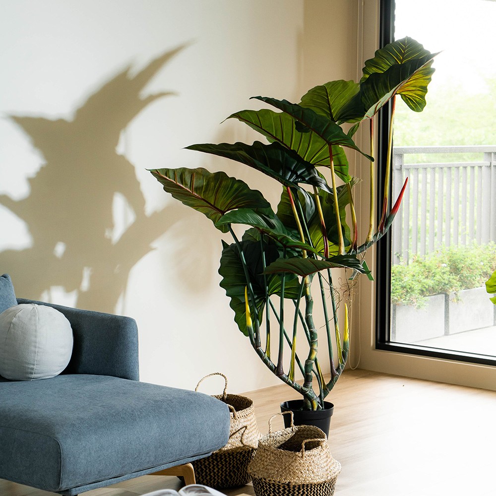 姑婆芋,有許多不同的別名,如觀音蓮、海芋,長得很像食用的芋頭,但因含有毒性故不能作為飲食用途,姑婆芋很常見於山林中,偌大的葉片很容易被辨認,也相當適合溫熱帶環境生長,早期社會就常利用姑婆芋巨大的葉片來包裝食材和漁貨,近年來,姑婆芋普遍的成為室內觀賞植物,彎曲的根莖,巨大的葉片,配上具有質感陶盆,馬上變成時尚感十足看起來乾淨典雅的高級盆栽。