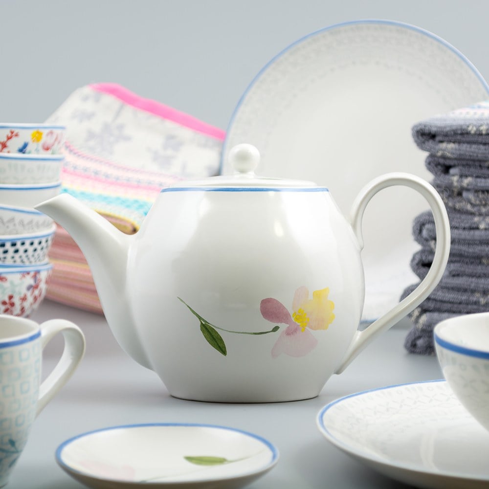 淡粉色的飄香花是一種花期長達半年的植物,因為花期長且氣味馨香而得名,粉晶色飄香花圖紋系列將這樣輕柔有韻味的花朵以水彩暈染的質感繪製於器皿上,乾淨優雅的氣質讓使用時都能彷彿聞到淡淡的花香,無論是歐洲或是中華文化都有品茶的嗜好,茶壺定是家庭中不可或缺的一道餐具器皿,此款粉晶色飄香花圖紋茶壺無論是親朋好友午後茶聚或是晚餐飯後的家庭小喫,圓形的壺身到壺嘴的曲線整體流暢又有田園韻味,就好像是看見美女與野獸電影中的茶壺太太會動起來與你說話一樣親切可愛。