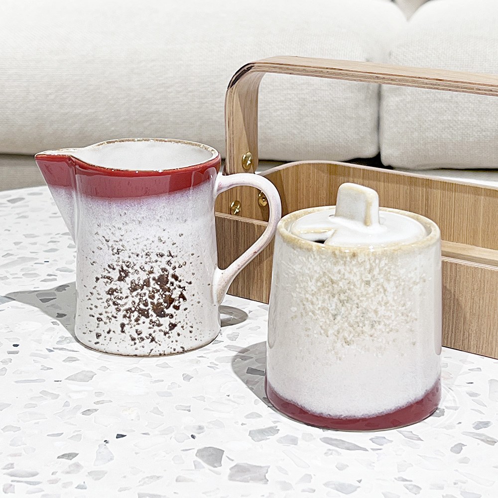 70年代寫意復古牛奶壺糖罐組有著濃濃的古窯韻味,自然優雅的漸層暈染設計,把人都帶入另一個時空,呈現了時代的美。將它融入居家空間裡,在早晨或午茶時刻,盛裝熱牛奶或熱茶,再依喜好加糖,增添生活的愜意和儀式感,也把藝術韻味濃縮在最好的時刻。