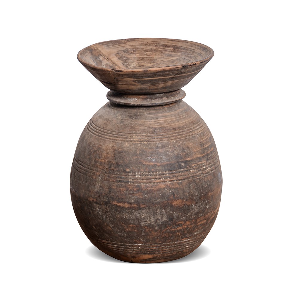 來自尼泊爾西部的特萊地區的傳統手工雕刻的復古木罐,片以前用來儲存食物、酥油和牛奶,罐口部有較大邊緣的設計用於接牛奶,當擠牛奶時,牛奶會噴出,寬大的邊緣會捕捉到這種液體。 品牌介紹 來自荷蘭阿姆斯特丹的 Raw Materials,是一間非常特殊的傢俱品牌,他們熱愛旅行,行走於世界各地,收集高品質的骨董原木木材,可能是報廢船隻的甲板,或是倉庫中被遺忘的骨董傢俱,甚至是一間廢棄的小木屋,將木材修復回收再製成各式的傢俱,保留骨董原木特有的風采,與每一段獨一無二的痕跡往事。